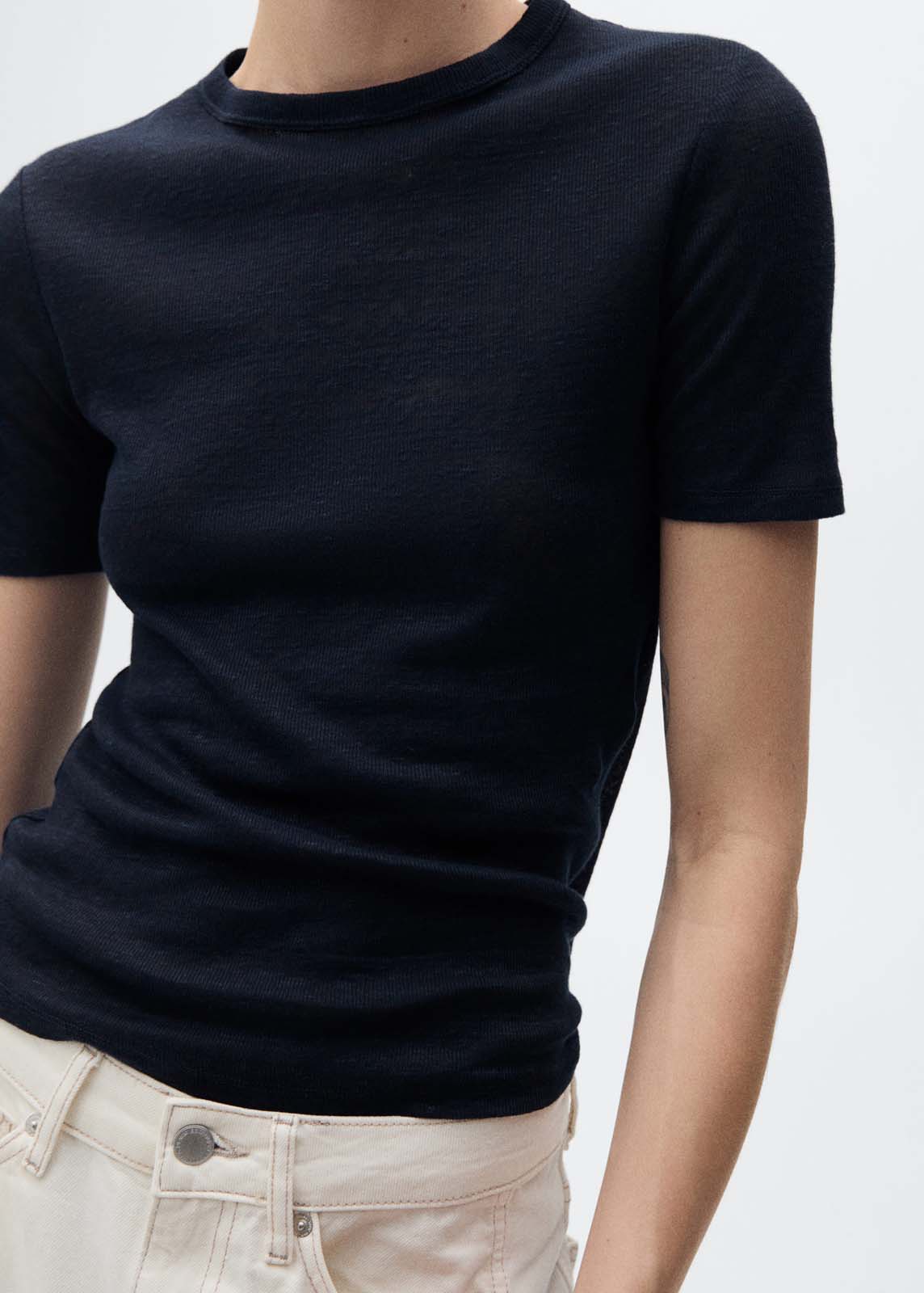 Manga corta,Sin cierre,Cuello redondo,Tejido 100% de lino,Diseño entallado