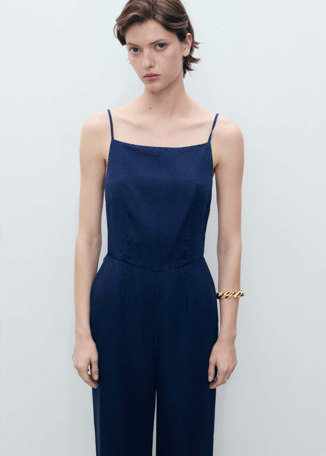 Sin mangas,Tirantes finos,Tejido de lyocell,Diseño recto,Cuello recto,Diseño largo,Efecto denim,Cierre de cremallera lateral