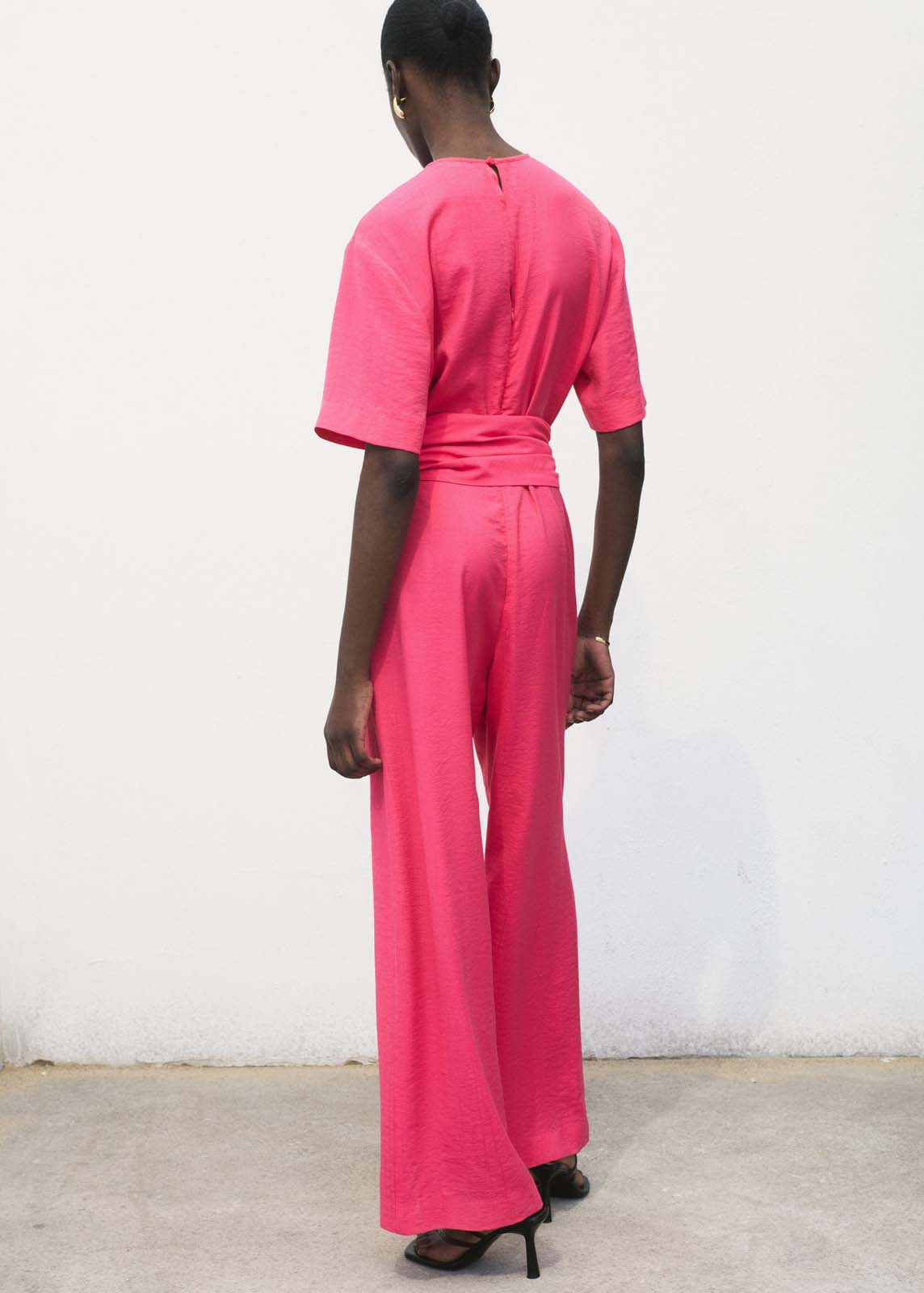Cierre de botón en la parte posterior,Manga corta,Trabillas,Cinturón con cierre de hebilla,Cuello redondo,Disponible Plus,Diseño recto,Diseño largo