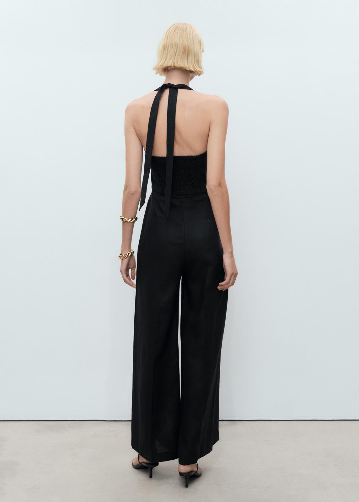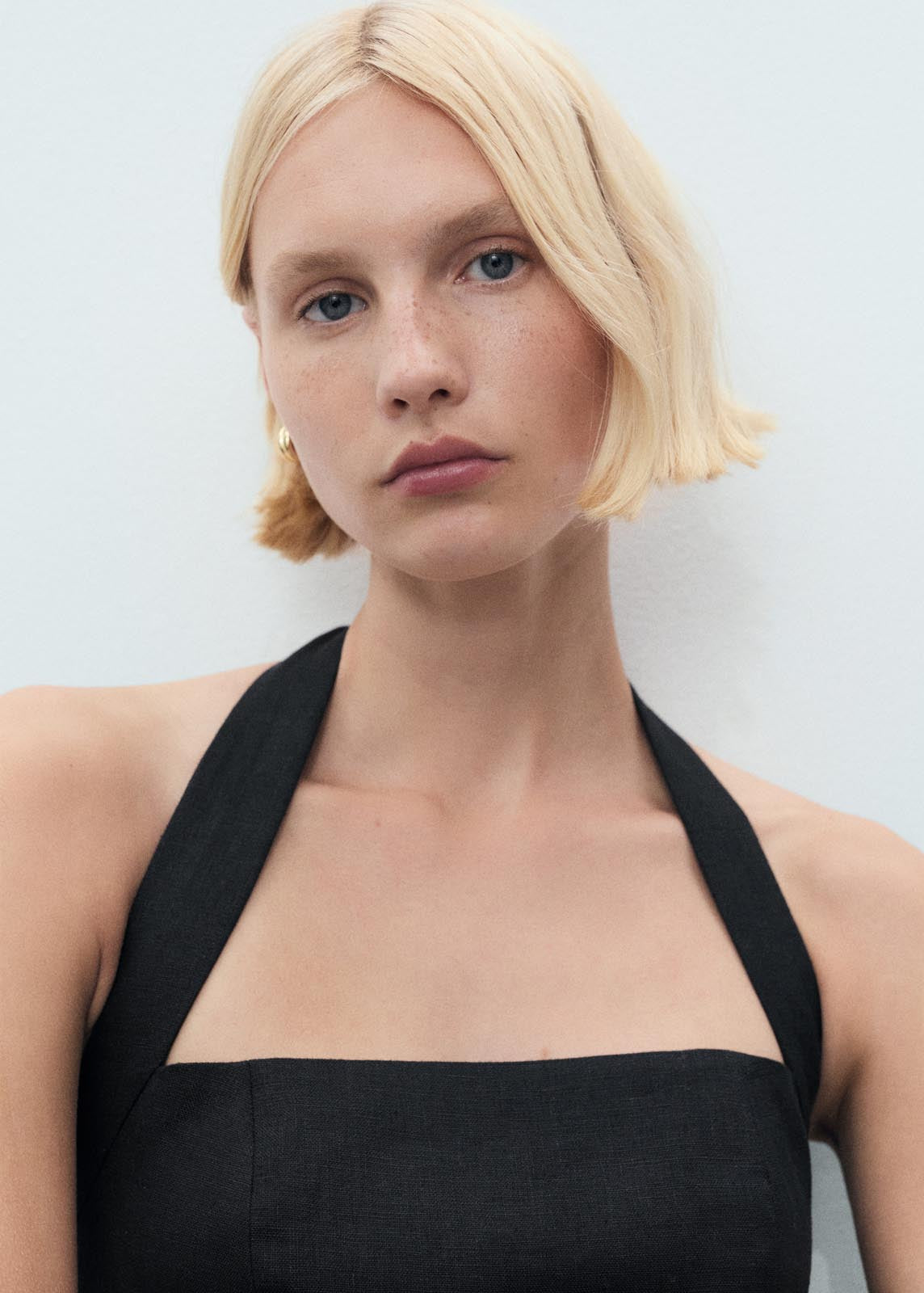 Forro interior 100% algodón,Sin mangas,Panel fruncido elástico en la parte posterior,Cierre de nudo en el cuello,Tejido 100% de lino,Tirantes anchos,Diseño recto,Cierre de cremallera en la parte posterior,El color verde agua es Exclusivo Online,Escote halter,Diseño largo