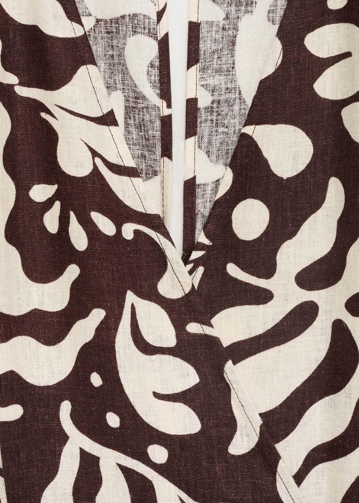 Cierre de botón en la parte posterior,Manga corta,Trabillas,Tejido mezcla de lino,Cinturón con cierre de hebilla,Dos bolsillos laterales,Diseño recto,Cuello de pico,Estampado de hojas,Diseño largo