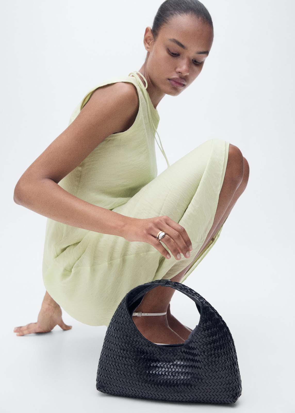 Cierre de lazo en la parte posterior,Cuello redondo,Diseño recto,Efecto arrugado,Diseño midi,Sin mangas