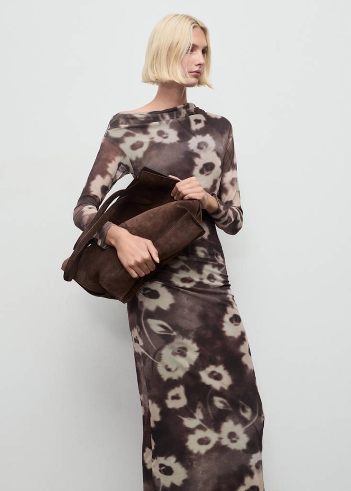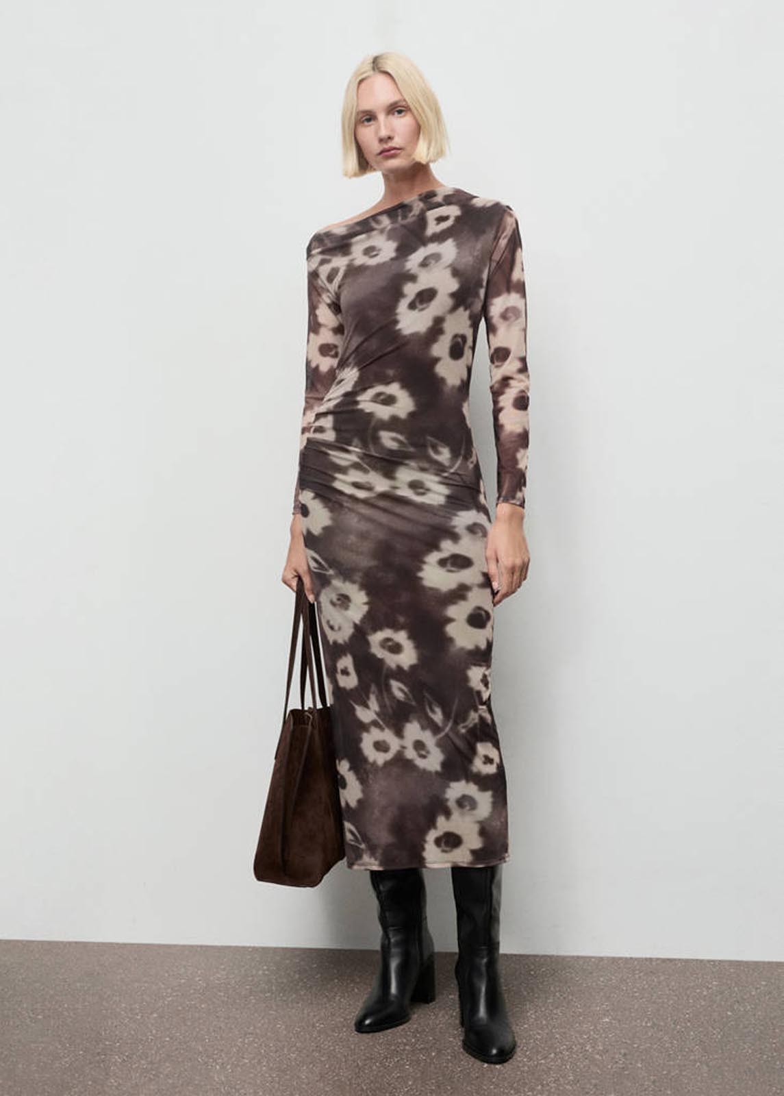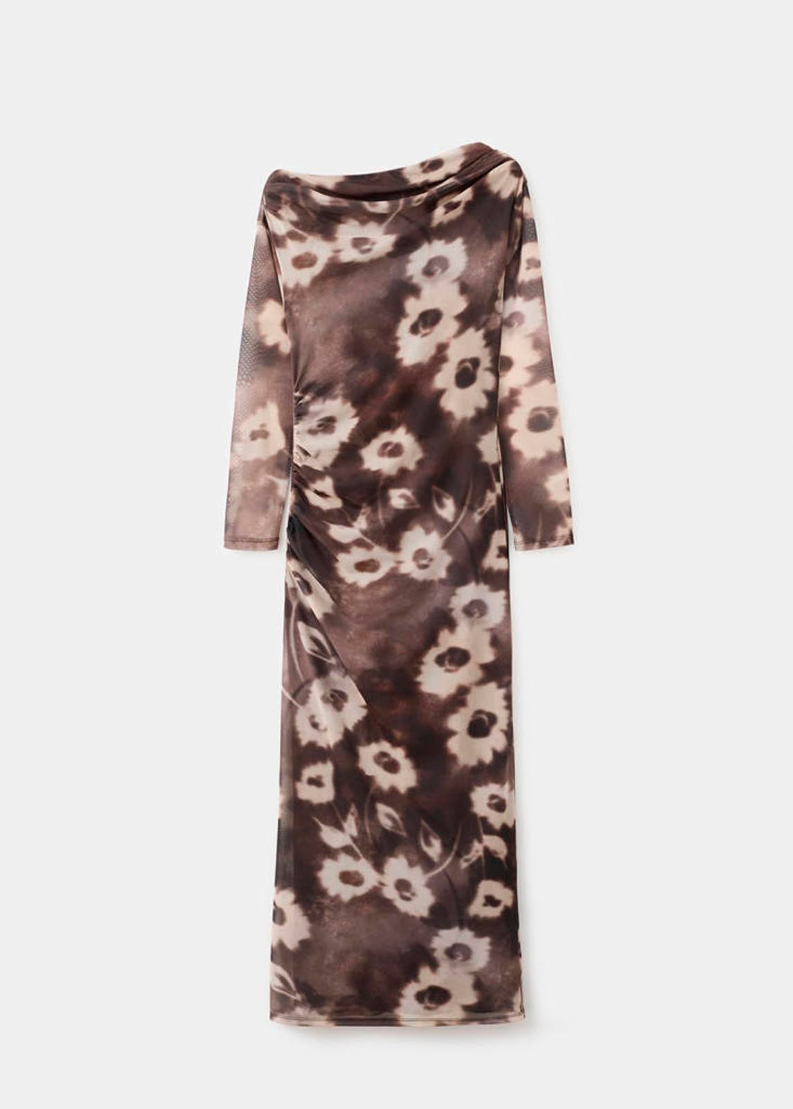Sin cierre,Detalle drapeado en la cintura,Esta prenda forma parte de nuestra colección casual, diseñada para acompañarte con estilo en tu día a día,Estampado floral,Cuello asimétrico,Diseño midi,Diseño entallado,Forro interior,Manga larga