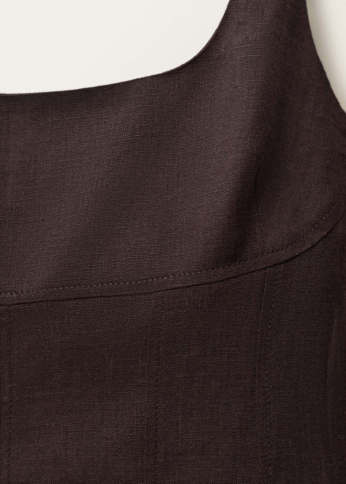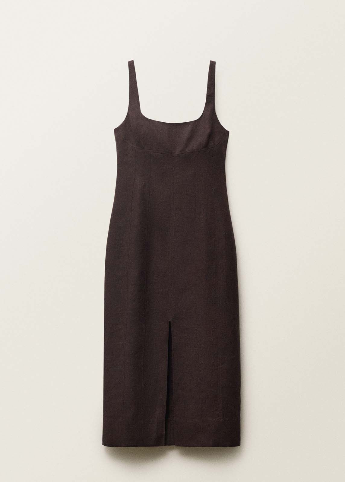 Abertura frontal en el bajo,Sin mangas,Tirantes finos,Colección Selection,Tejido 100% de lino,Cuello escotado,Diseño recto,Cierre de cremallera en la parte posterior,Cintura entallada,Diseño midi,Forro interior,Detalle costuras