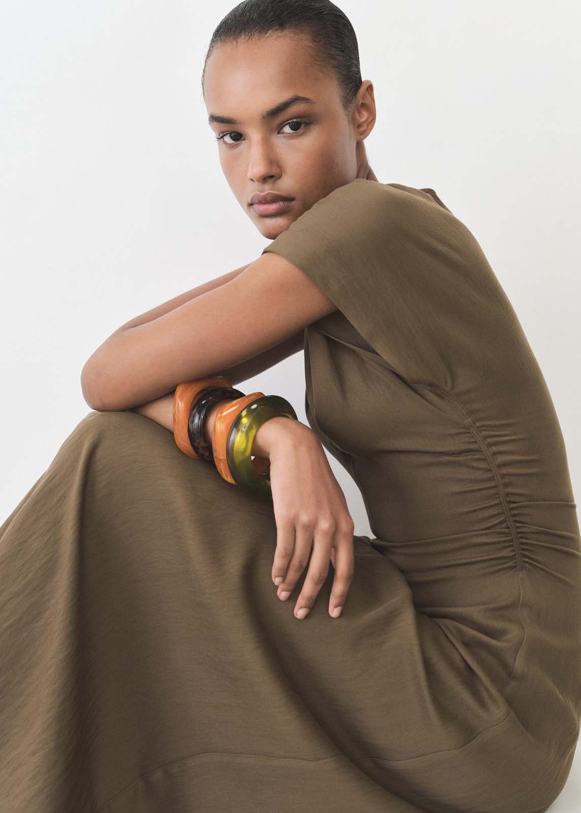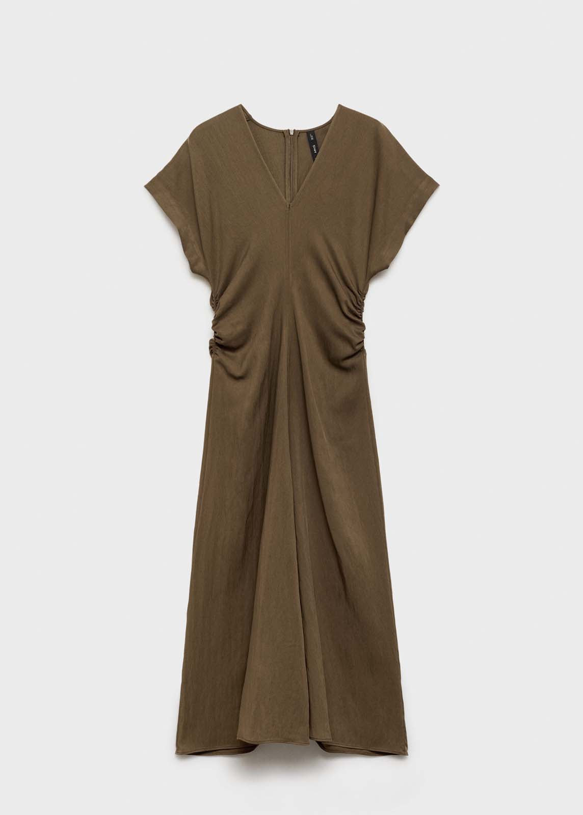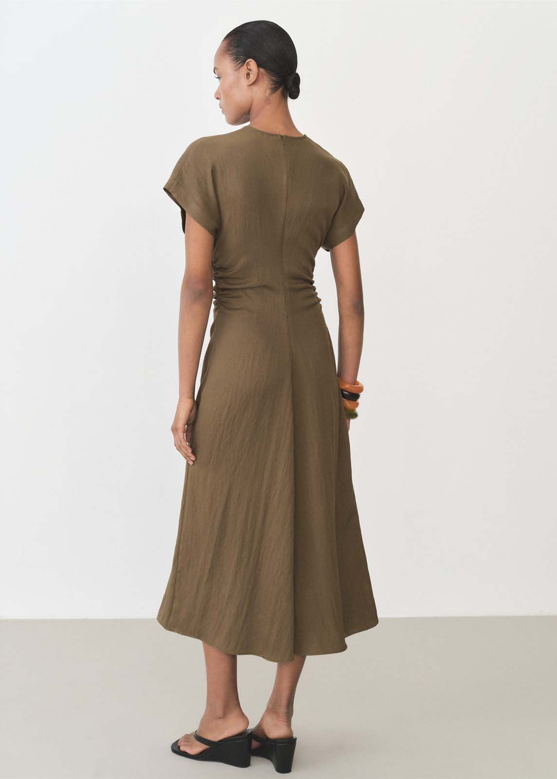 Manga corta,Tejido fluido,Diseño evasé,Escote de pico,Cierre de cremallera invisible en la parte posterior,Tejido mezcla lyocell,Diseño midi,Diseño drapeado