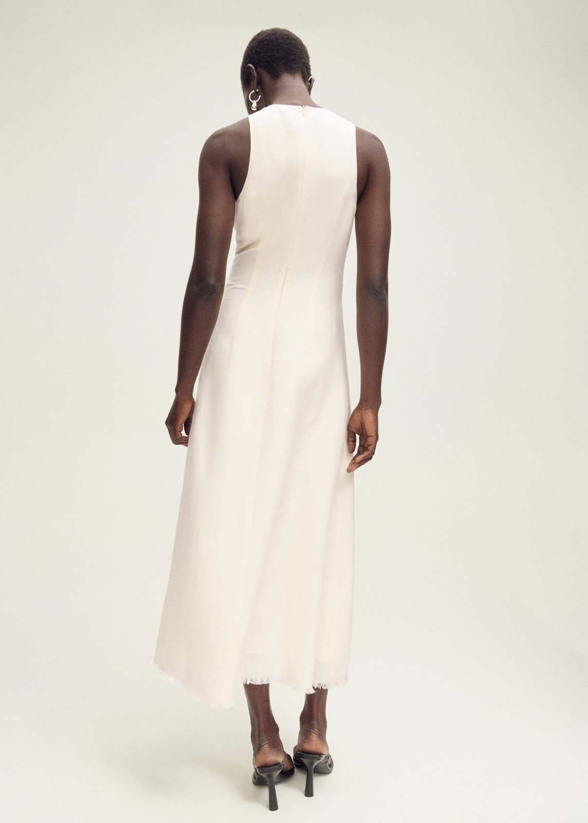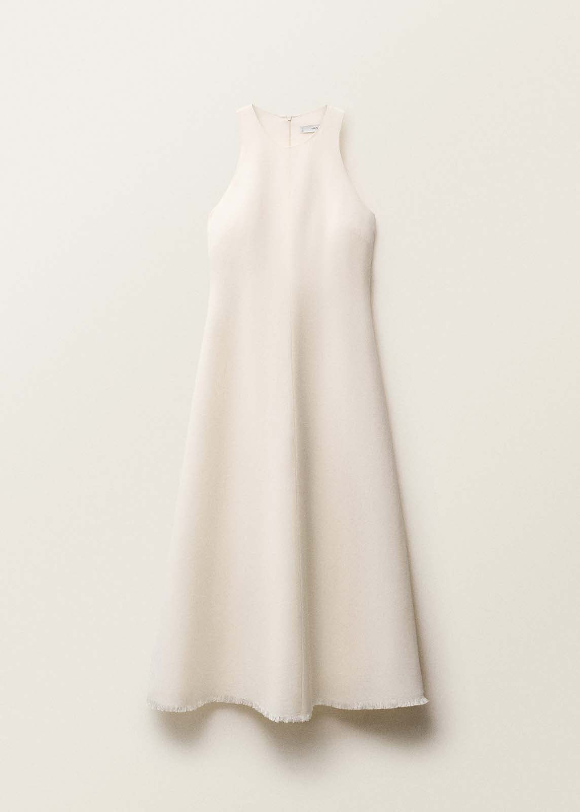 Tejido mezcla de lino,Colección Selection,Diseño evasé,Bajo deshilachado,Cierre de cremallera en la parte posterior,Diseño midi,Sin mangas,Cuello halter