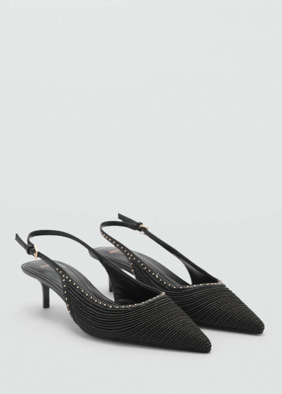 Tejido de fibra natural,Detalle de tachuelas,Con punta,Diseño destalonado,Cierre de hebilla,Tacón kitten,El color marrón es exclusivo online,El tacón mide 4,5 cm
