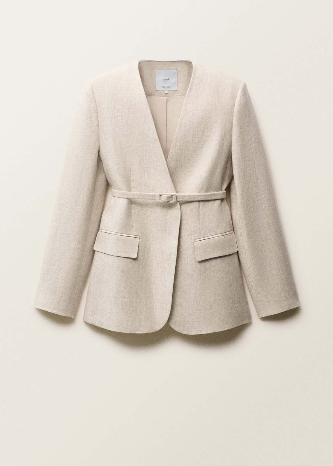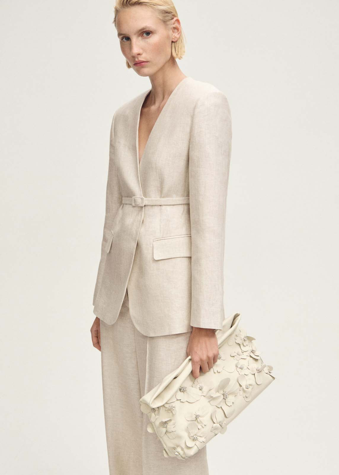 Hombros pronunciados,Cierre delantero,Diseño cruzado,Colección Selection,Cinturón con cierre de hebilla,Tejido 100% de lino,Dos bolsillos de solapa laterales,Total look,Diseño recto,Estilo traje,Cuello de pico,Manga larga