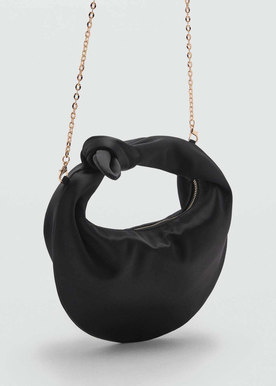 Asa de cadena desmontabe,Tejido satinado,Bolsillo interior,Asa de mano,Nudo decorativo,Tamaño mediano,Cierre de cremallera,Forro interior