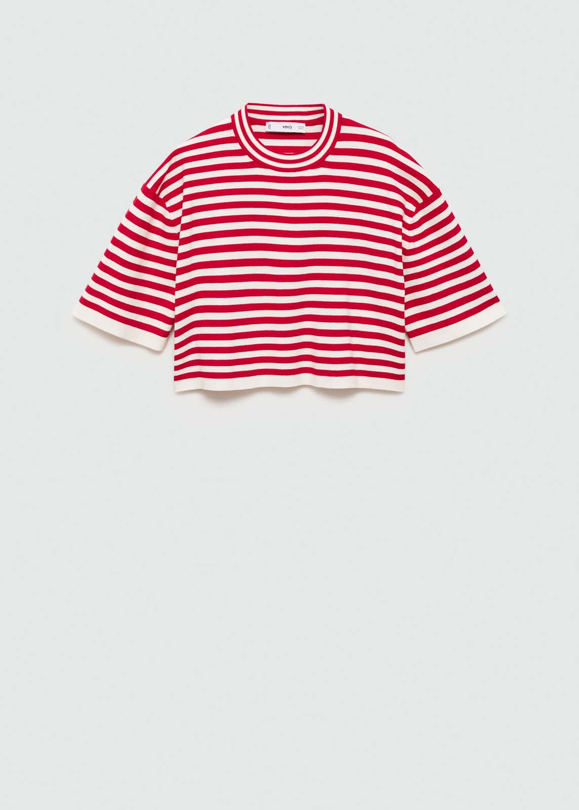 Manga corta,Tejido de punto fino,Sin cierre,Diseño crop,Cuello redondo,Diseño recto,Diseño de rayas