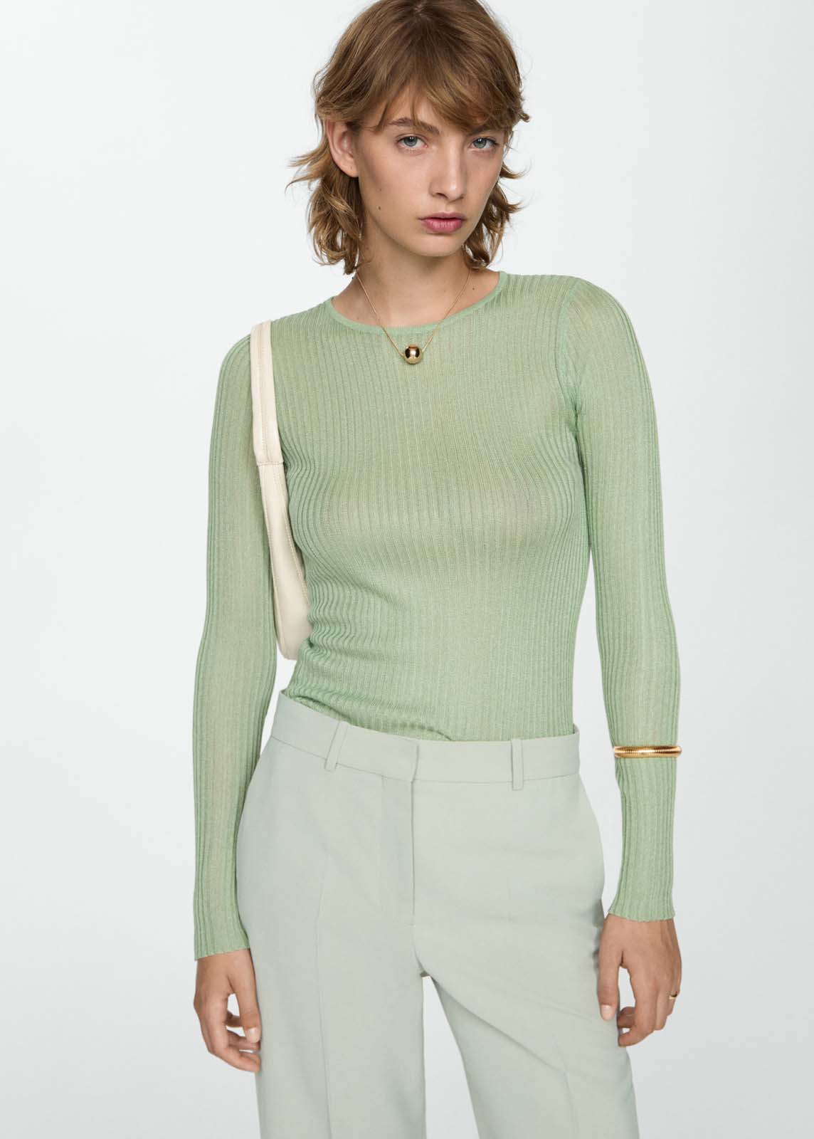 Tejido de punto de canalé,Tejido de punto fino,Cuello redondo,Diseño entallado,Manga larga