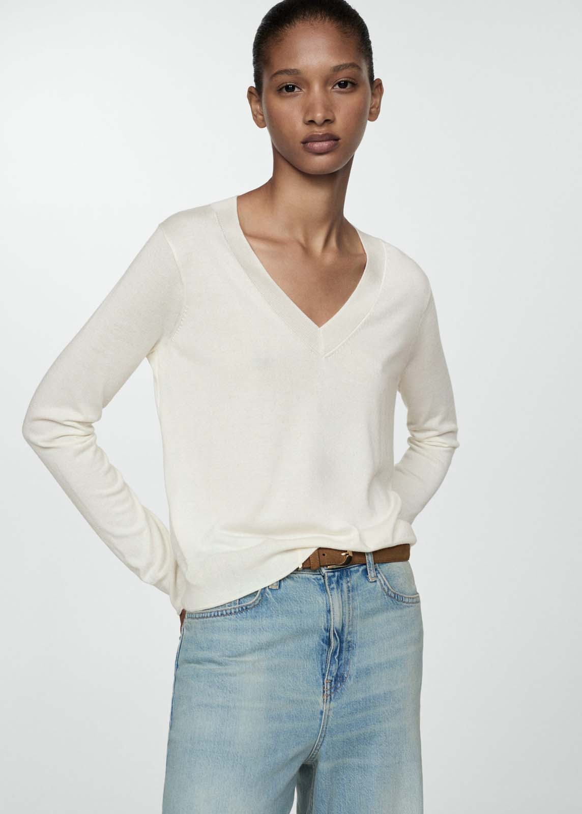 Looks de oficina,Tejido de punto fino,Cuello pico,Disponible Plus,Manga larga,Terminaciones en canalé