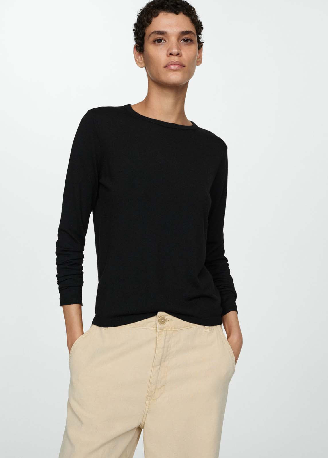 Tejido de punto fino,Cuello redondo,Disponible Plus,Diseño recto,La modelo mide 1,81 y lleva una talla S/36,Manga larga