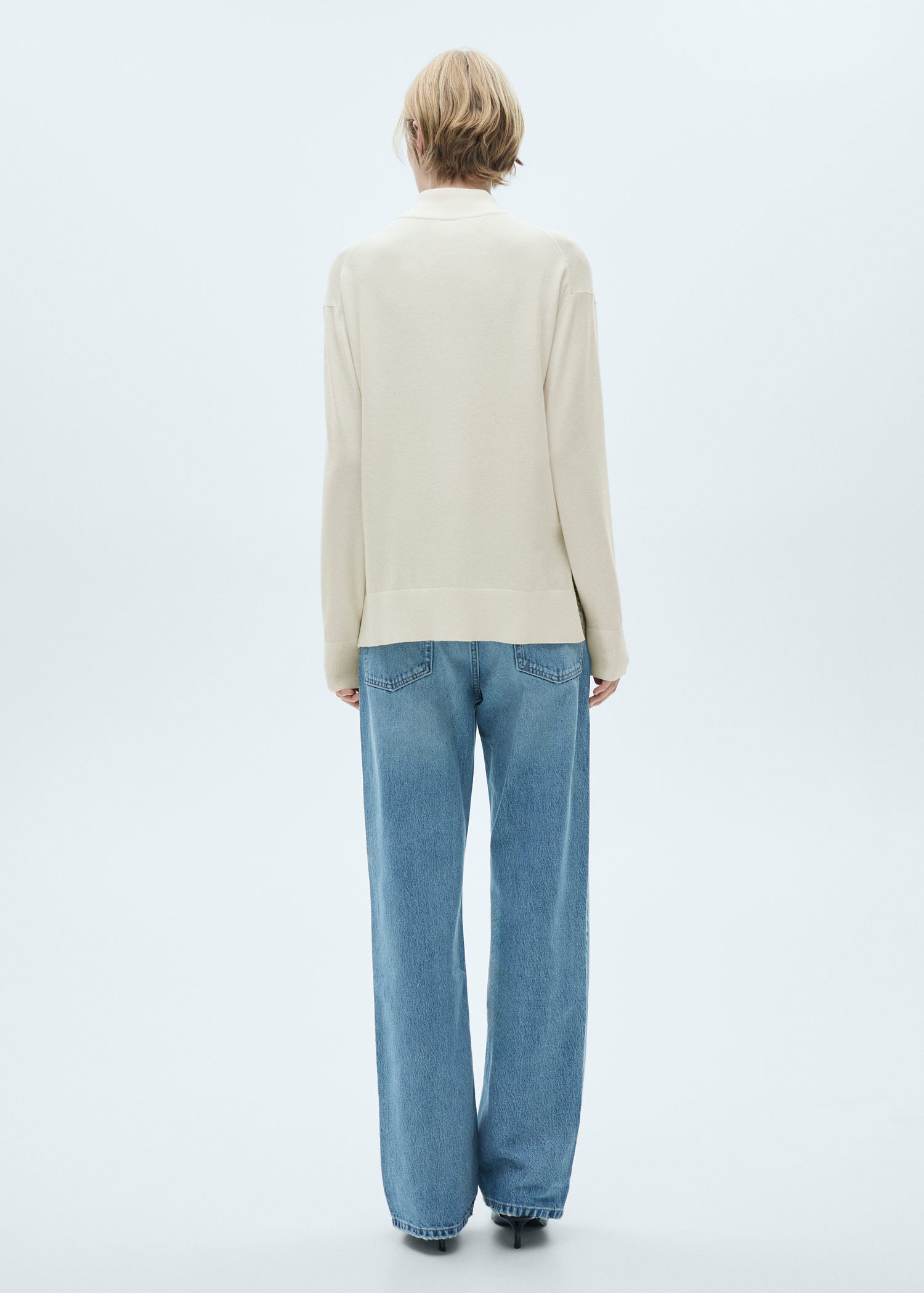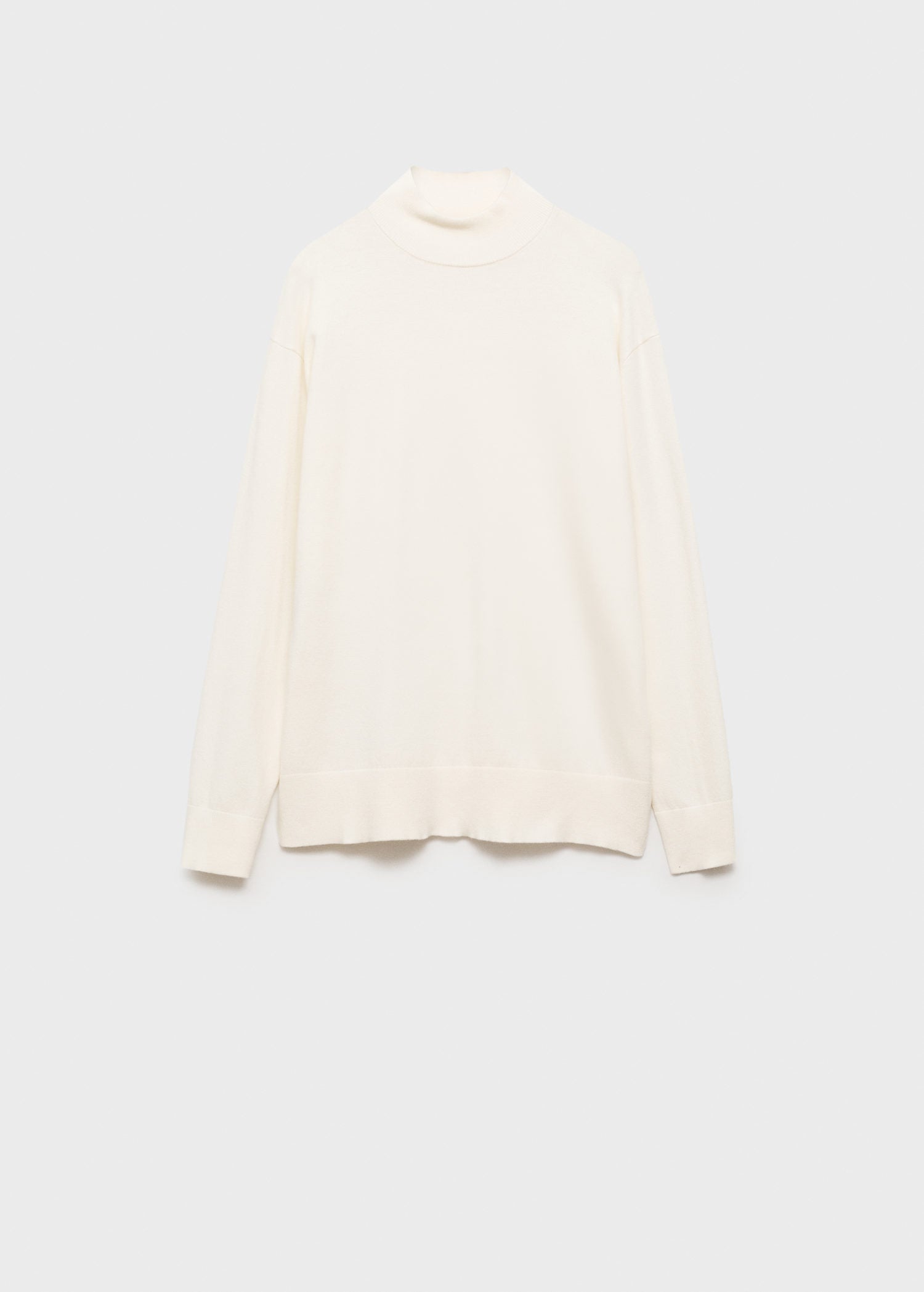 Tejido de punto fino,Diseño recto,Diseño oversize,Cuello perkins,La modelo mide 1,81 y lleva una talla S/36,Manga larga,Terminaciones en canalé