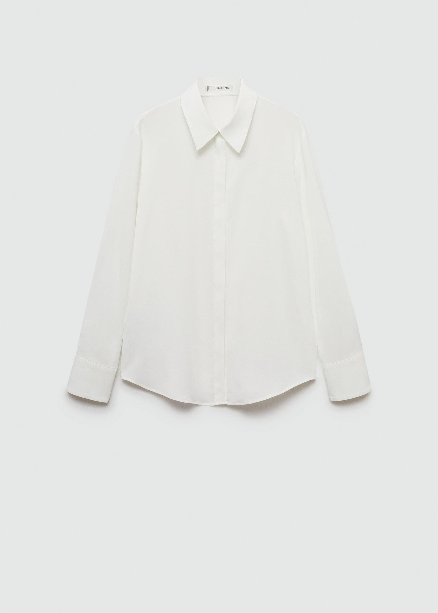 Tejido fluido,Disponible Plus,Manga larga con puños abotonados,Diseño recto,Cuello camisero,Cierre delantero con botones