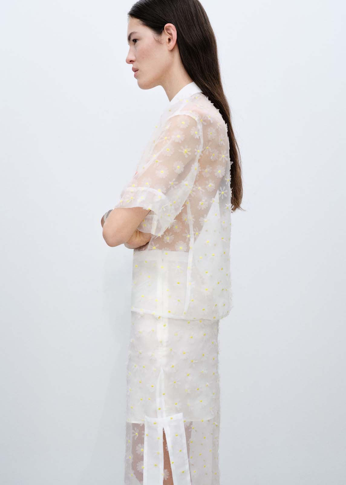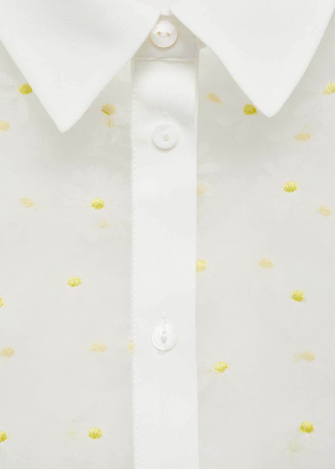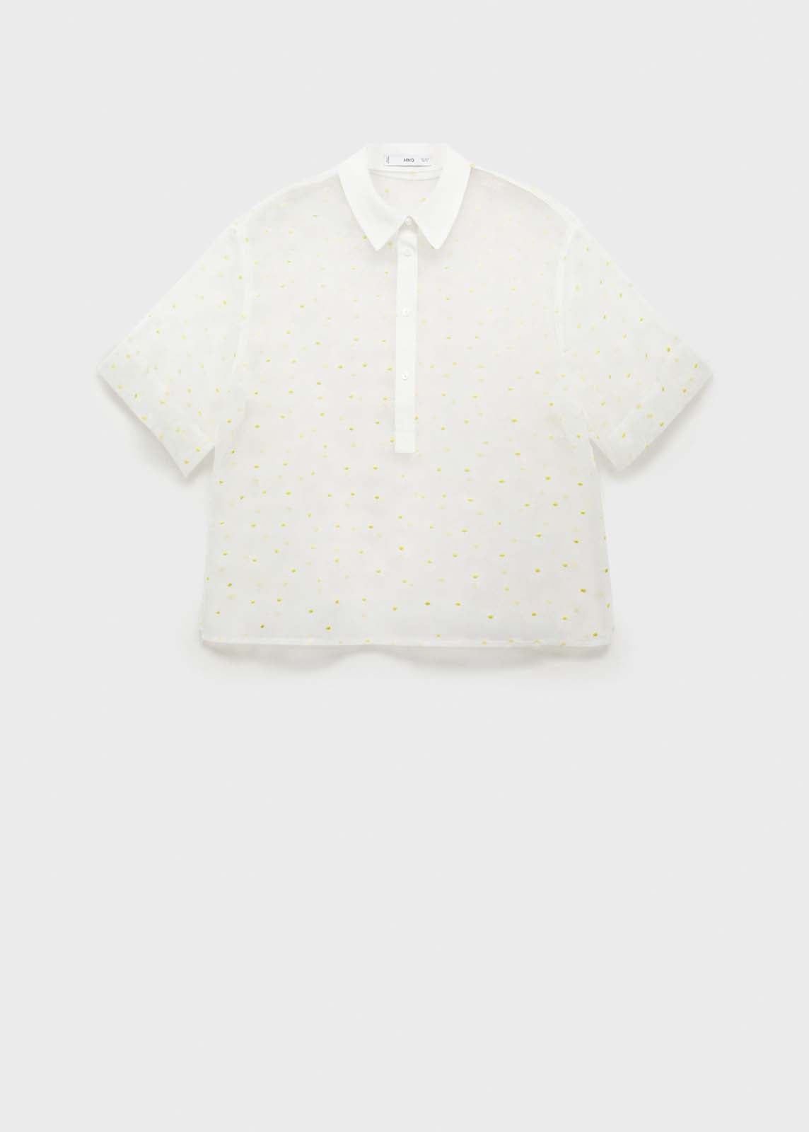 Manga corta,Diseño recto,Cuello camisero,Bordado de flores,Diseño semitransparente,Cierre delantero con botones
