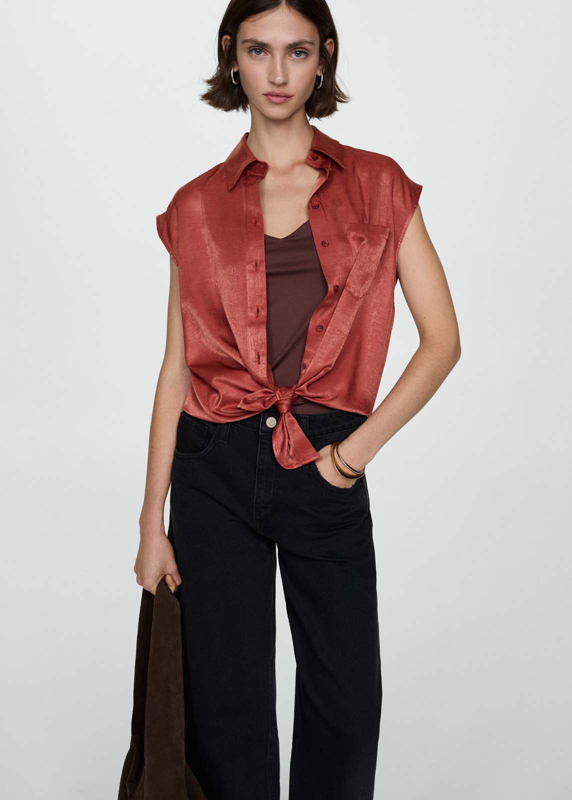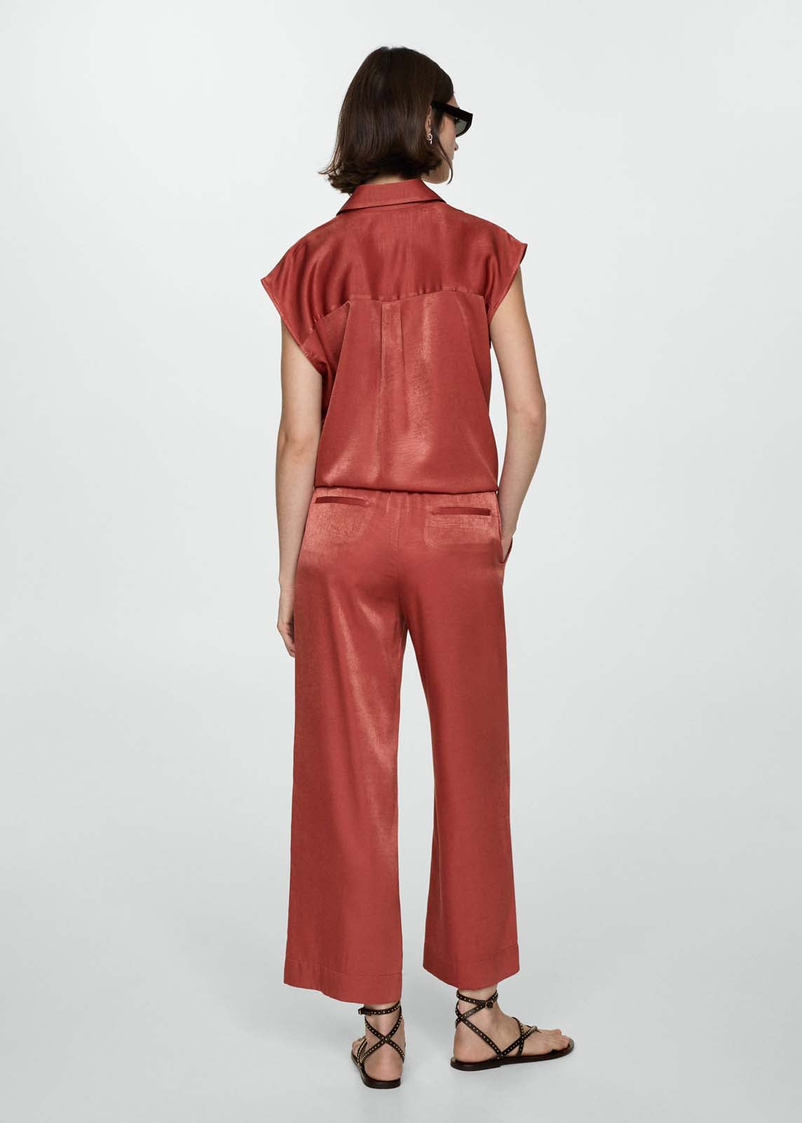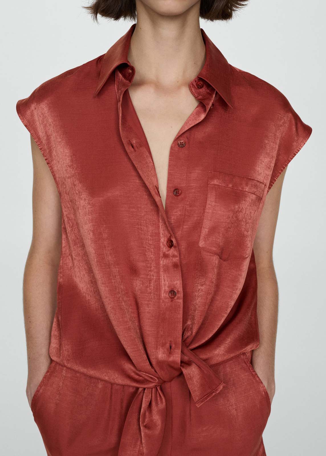 Manga corta,Tejido fluido,Tejido satinado,Total look,Bolsillo de parche en el pecho,Diseño recto,Cuello camisero,Cierre de lazo en la parte delantera,Cierre delantero con botones,La modelo mide 1,74 y lleva una talla S/36