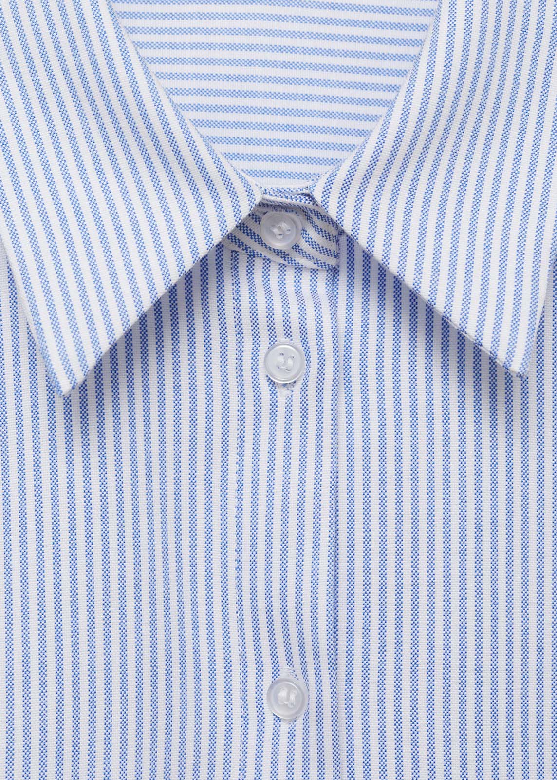 Estampado de rayas,Cierre de botones en la parte delantera,Manga larga con puños abotonados,Diseño recto,Cuello camisero,Tejido mezcla de algodón,Un bolsillo de parche en la parte delantera