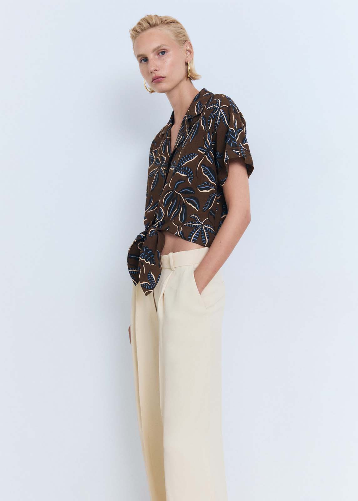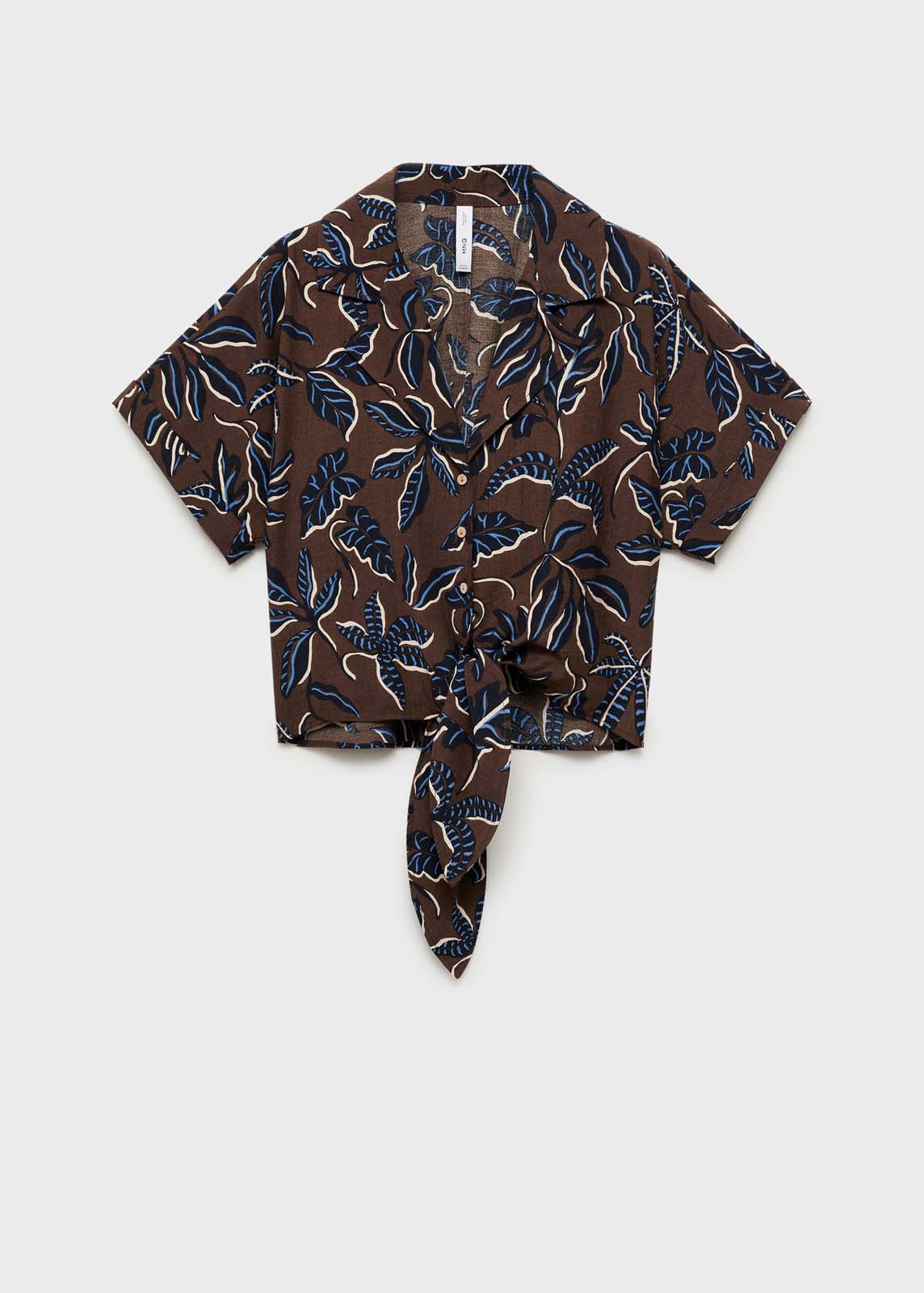 Estampado,Manga corta,Diseño crop,Disponible Plus,Diseño recto,Cuello camisero,Cierre delantero con botones,Detalle de nudo en la parte delantera