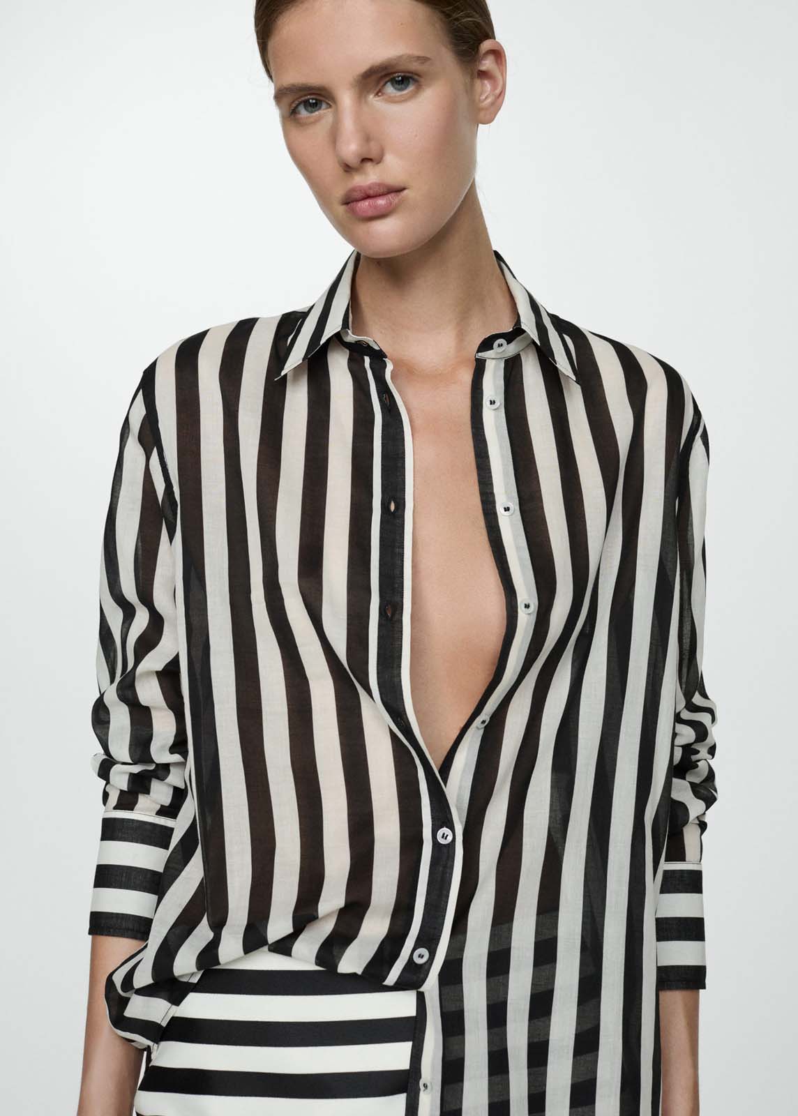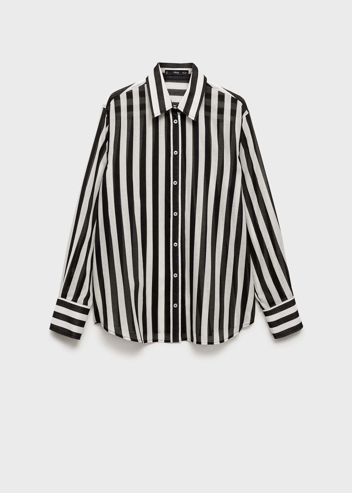 Estampado de rayas,Cierre de botones en la parte delantera,Tejido semitransparente,La modelo mide 180 cm y lleva una talla S,Manga larga con puños abotonados,Cuello camisero,Tejido 100% algodón