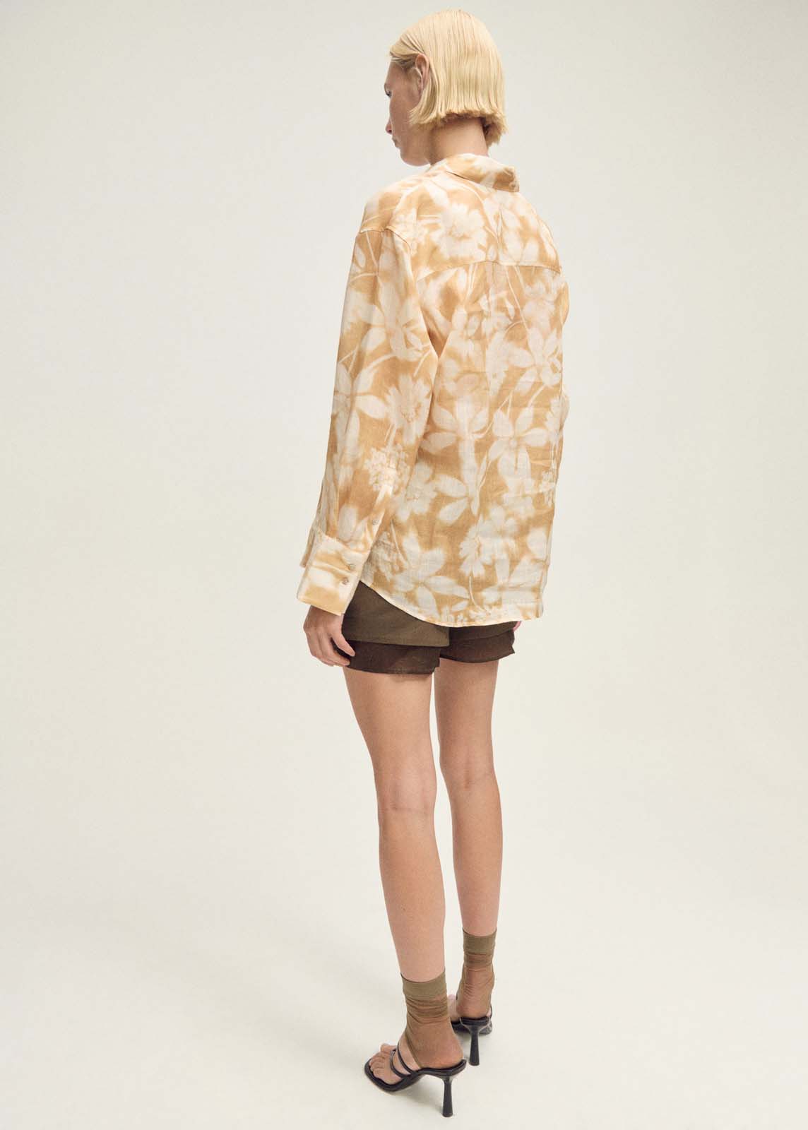 Tejido 100% ramio,Cierre multiposición,Cierre de botones en la parte delantera,Colección Selection,Regular fit,Manga larga con puños abotonados,Diseño recto,Estampado floral,Cuello camisero