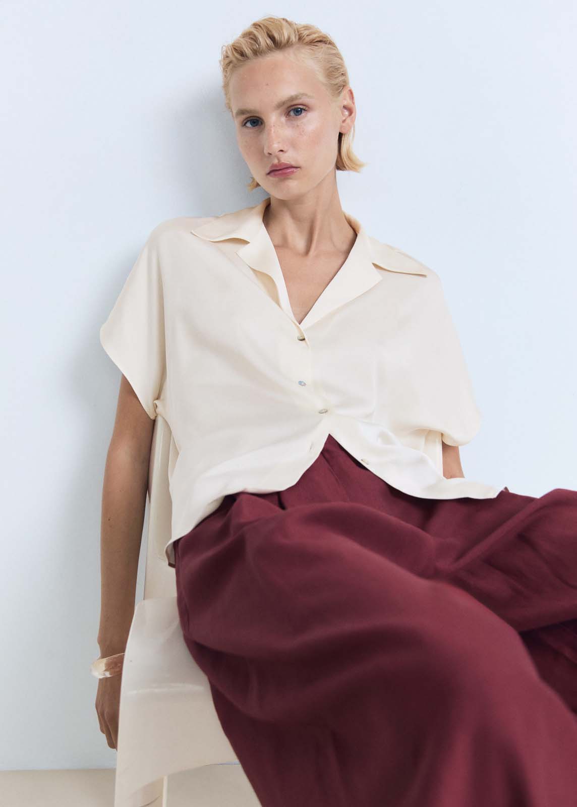 Manga corta,Tejido satinado,Regular fit,Disponible Plus,Cuello camisero,Cierre delantero con botones