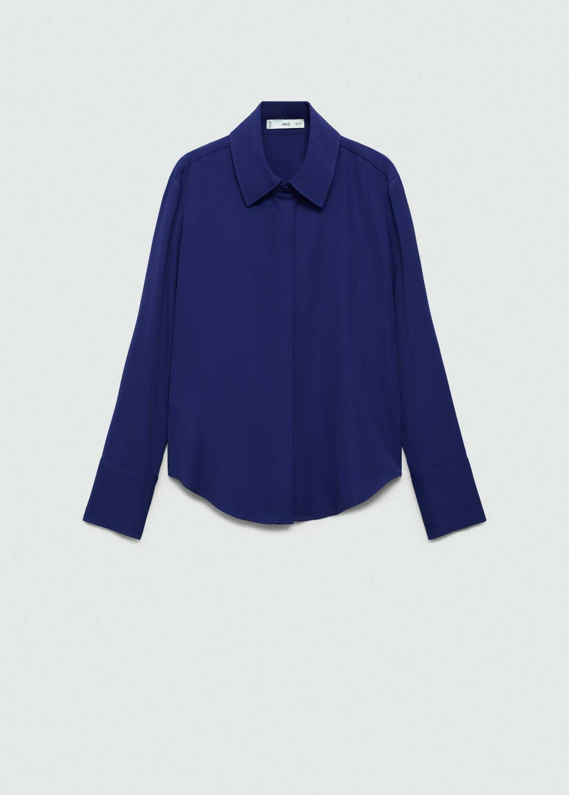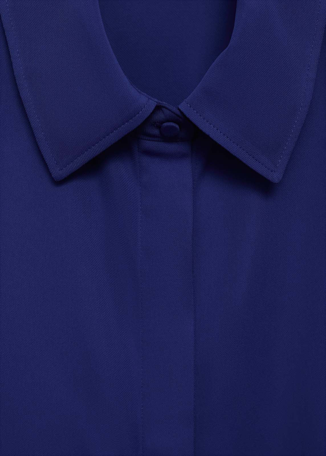 Tejido fluido,Manga larga con puños abotonados,Diseño recto,Cuello camisero,Cierre delantero de botones oculto