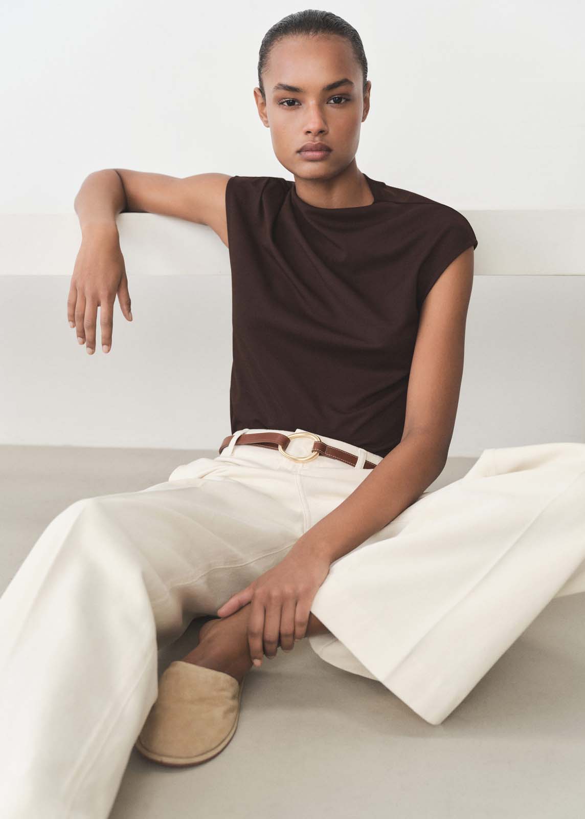 Tejido fluido,Total look,Diseño recto,Cuello asimétrico,Detalles fruncidos,Sin mangas