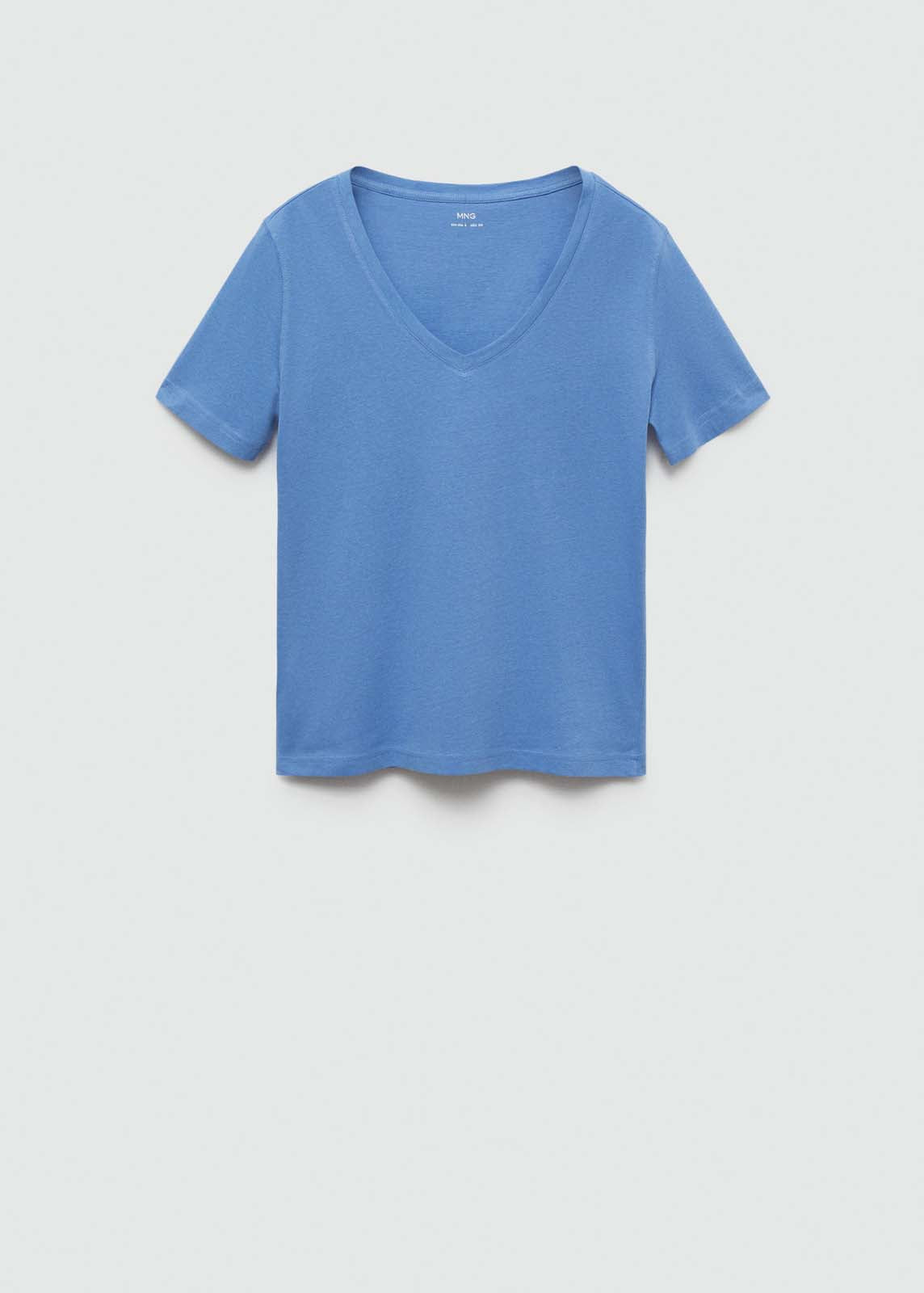 Manga corta,Cuello pico,Disponible Plus,Diseño recto,Tejido 100% algodón,La modelo mide 1,79 y lleva una talla S/36