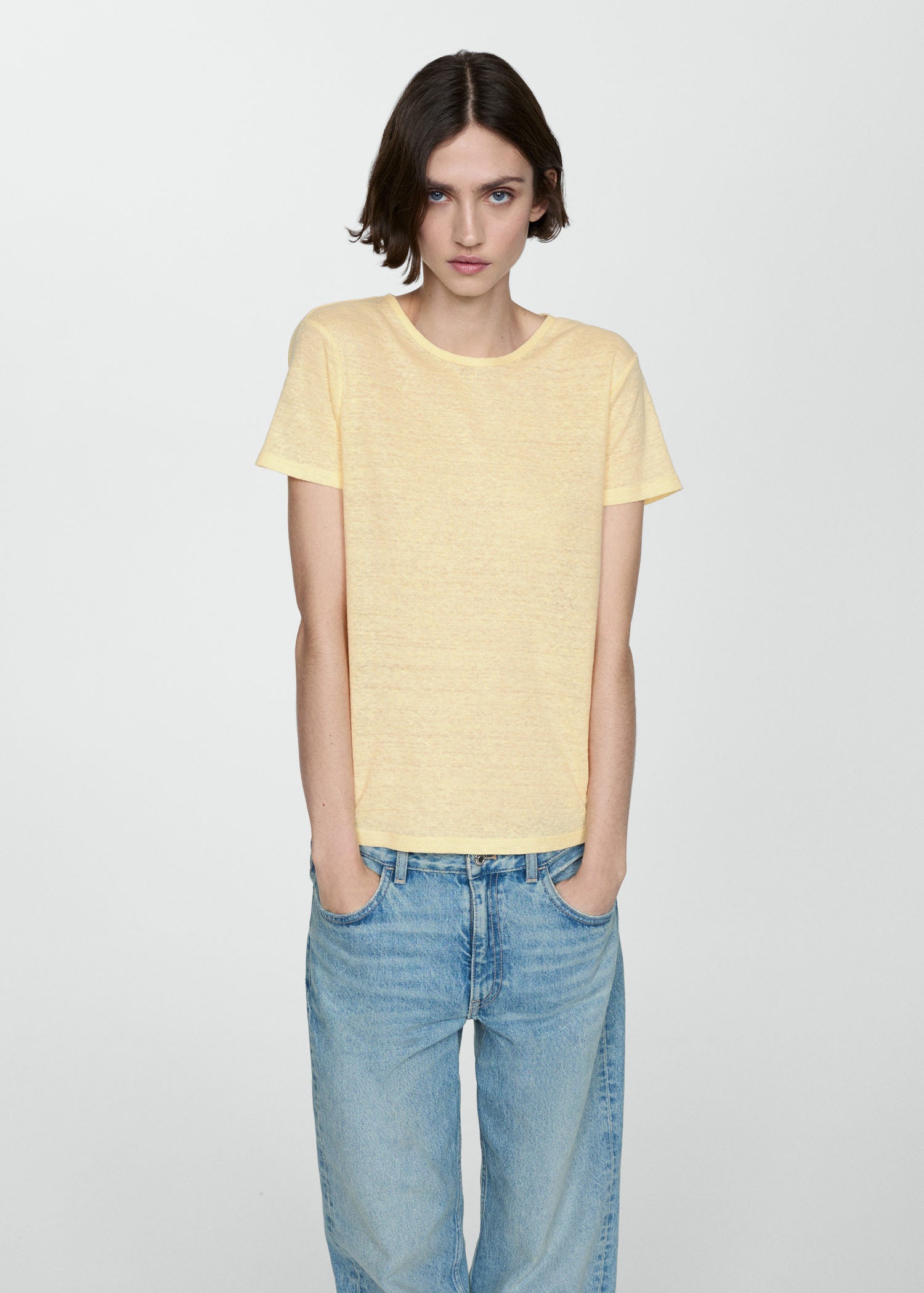 Manga corta,Slim fit,100% Lino,Diseño recto,Sin cierre,Cuello redondo