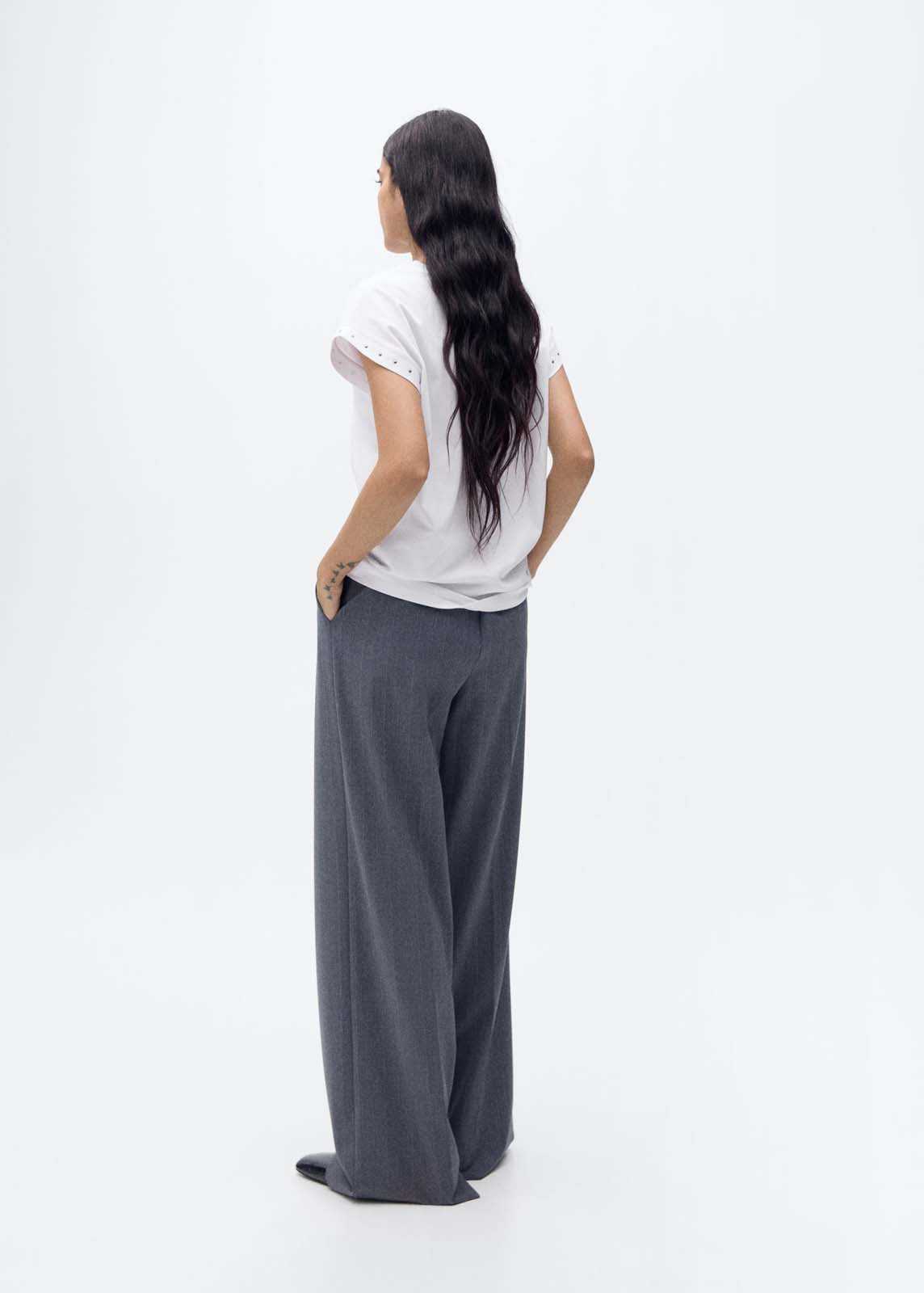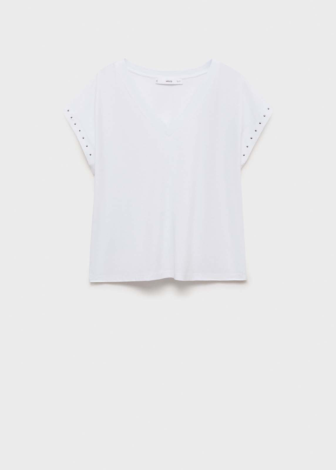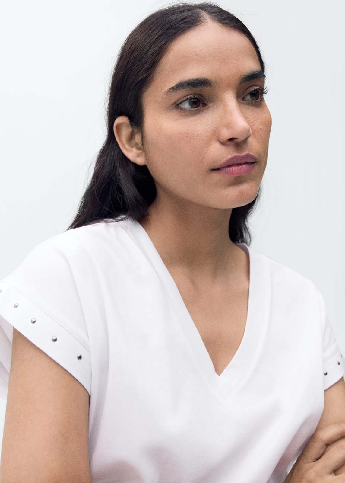 Manga corta,Detalle de tachuelas,Cuello pico,Diseño recto,Tejido 100% algodón