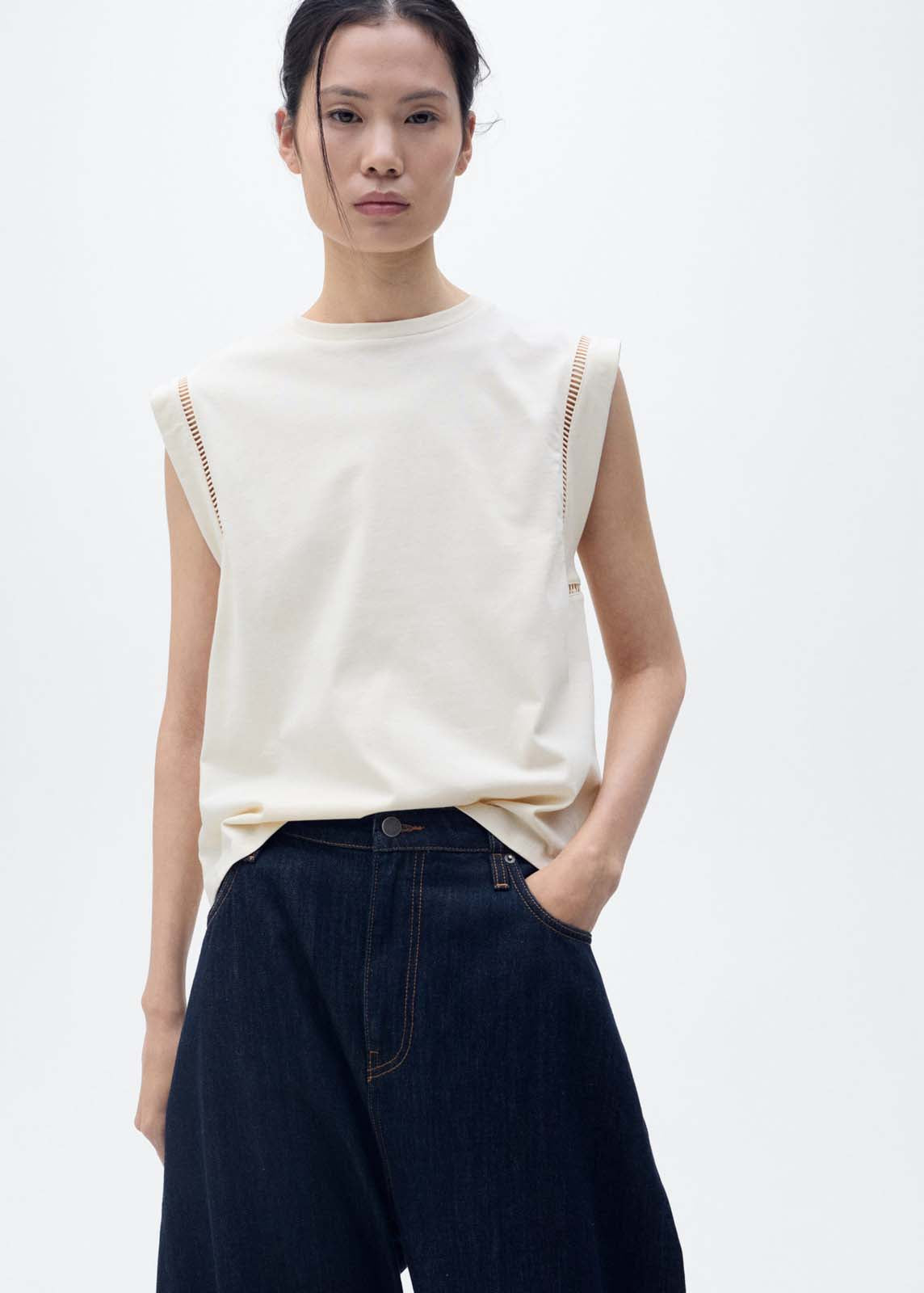 Ribetes calados,Sin cierre,Cuello redondo,Diseño recto,Sin mangas,Tejido 100% algodón