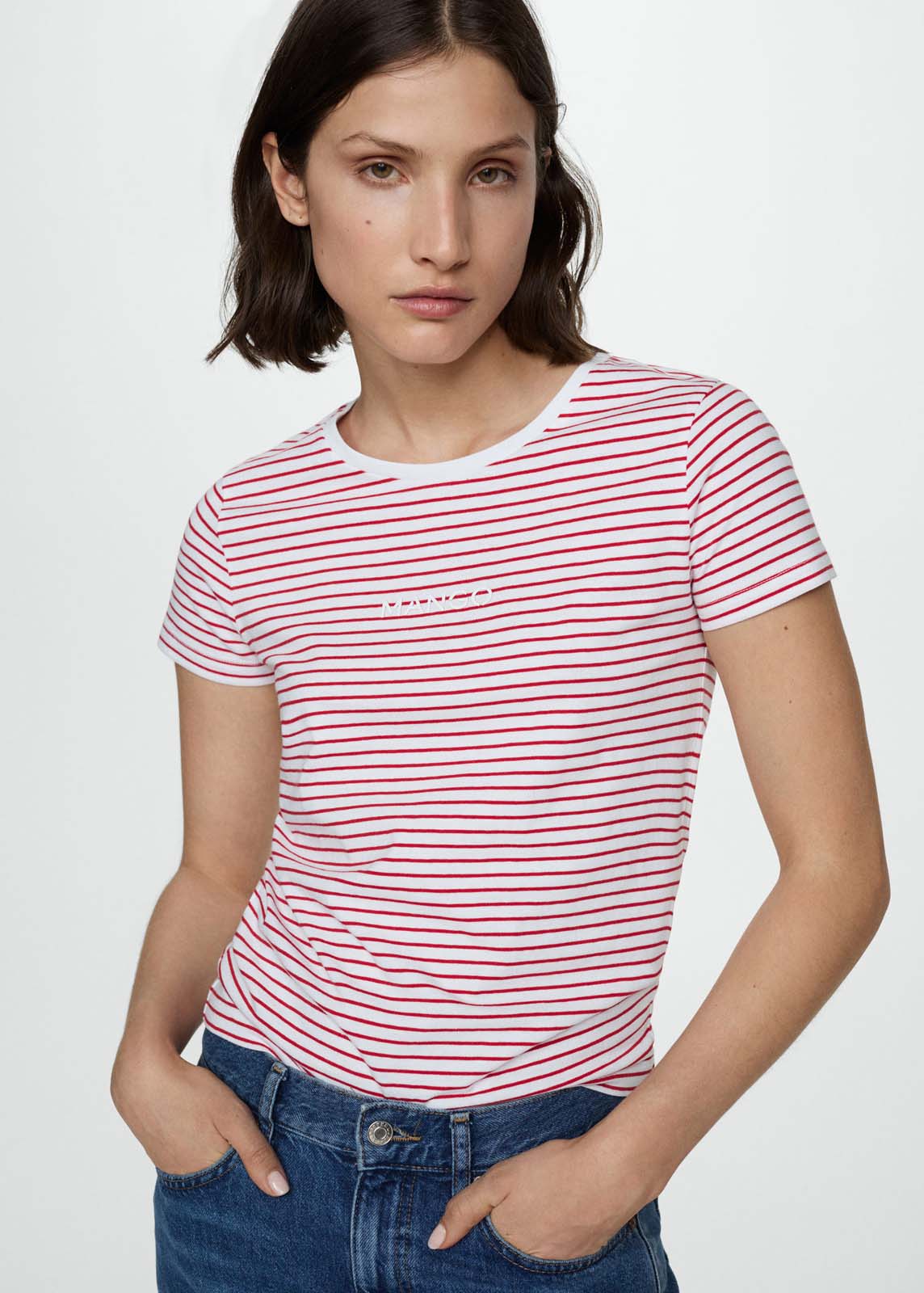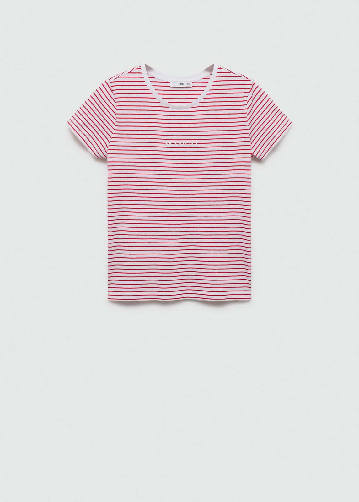 Logo estampado,Manga corta,Cuello redondo,Diseño recto,Diseño de rayas,Tejido 100% algodón