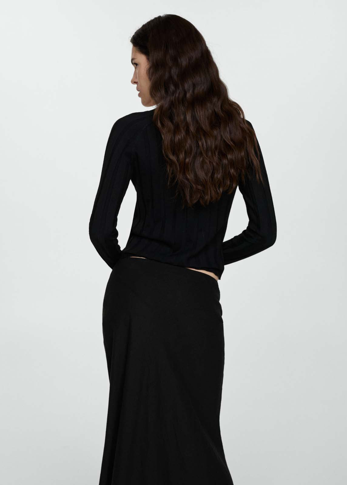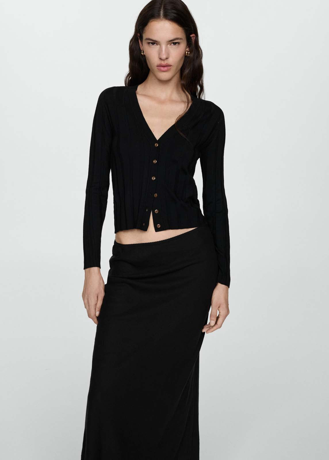 Tejido de punto fino,Cuello pico,Disponible Plus,Diseño recto,Cierre delantero con botones,Manga larga