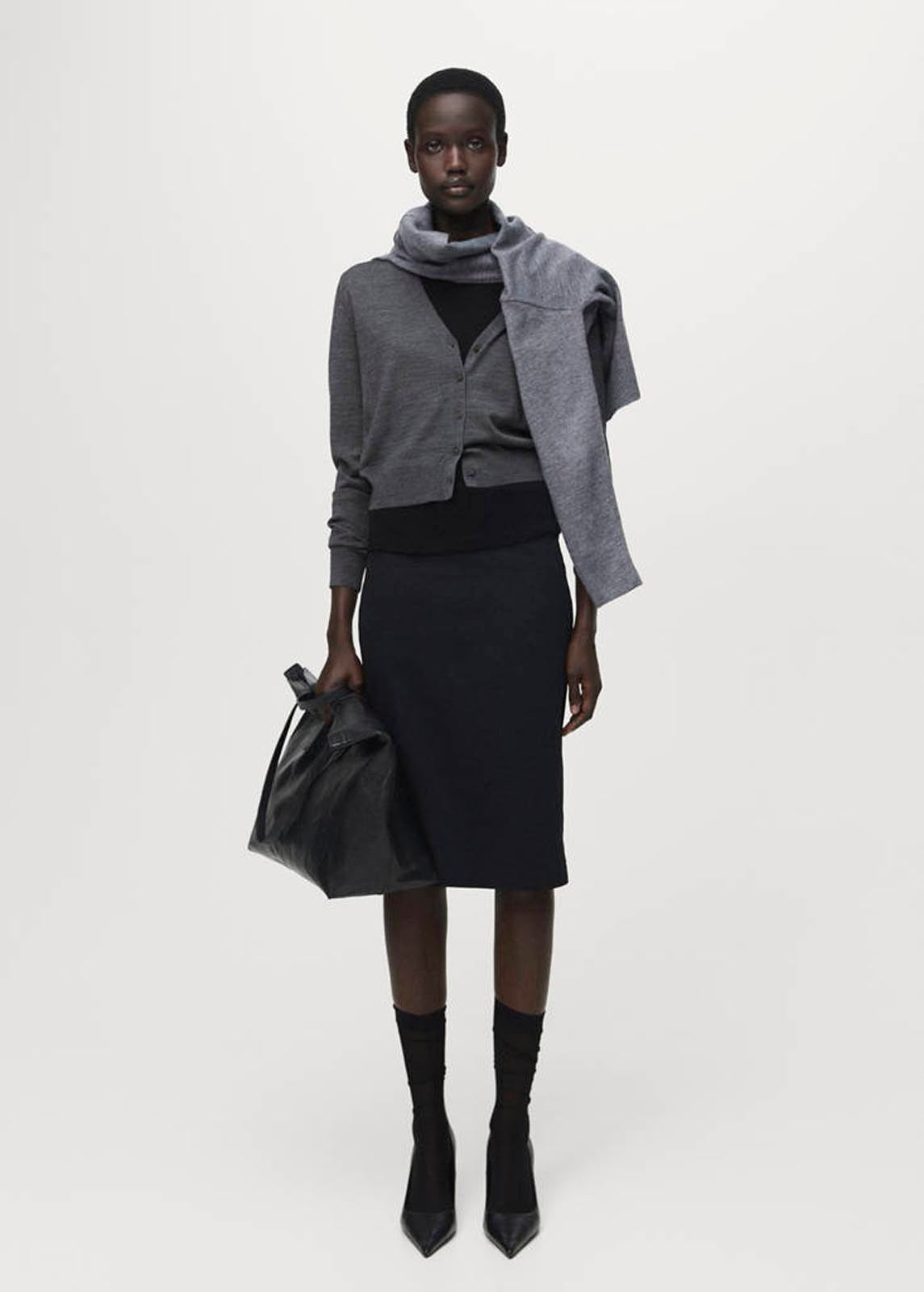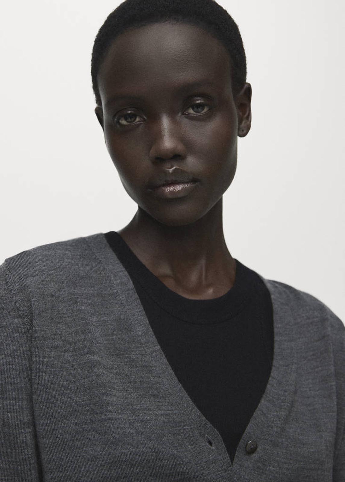 Tejido de punto fino,Cuello pico,Colección Selection,Diseño recto,El color negro es exclusivo online,Cierre delantero con botones,Tejido 100% lana,Manga larga