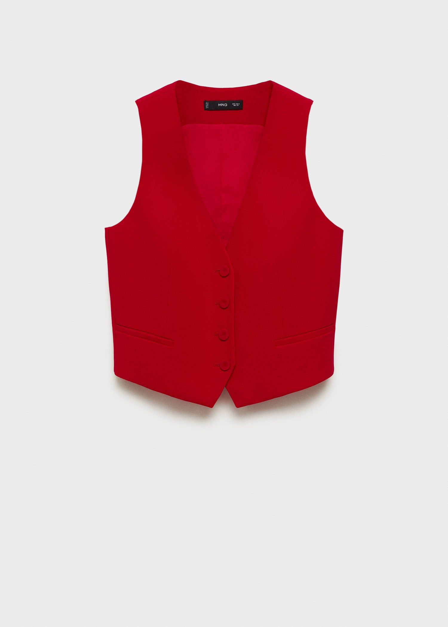 Dos bolsillos de ribete delanteros,Cuello pico,Disponible Plus,Total look,Diseño recto,Estilo traje,Sin mangas,Cierre delantero con botones,Forro interior