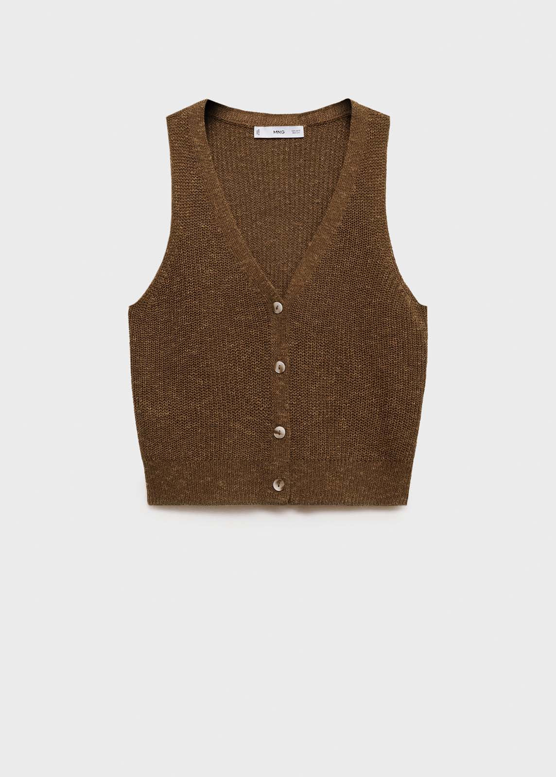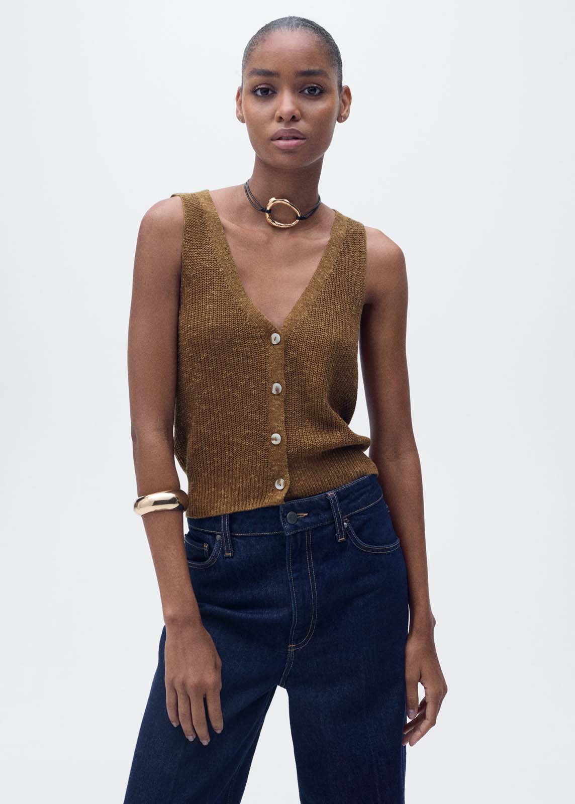 Tejido de punto grueso,Tirantes anchos,Disponible Plus,Diseño recto,Cuello de pico,Sin mangas,Cierre delantero con botones