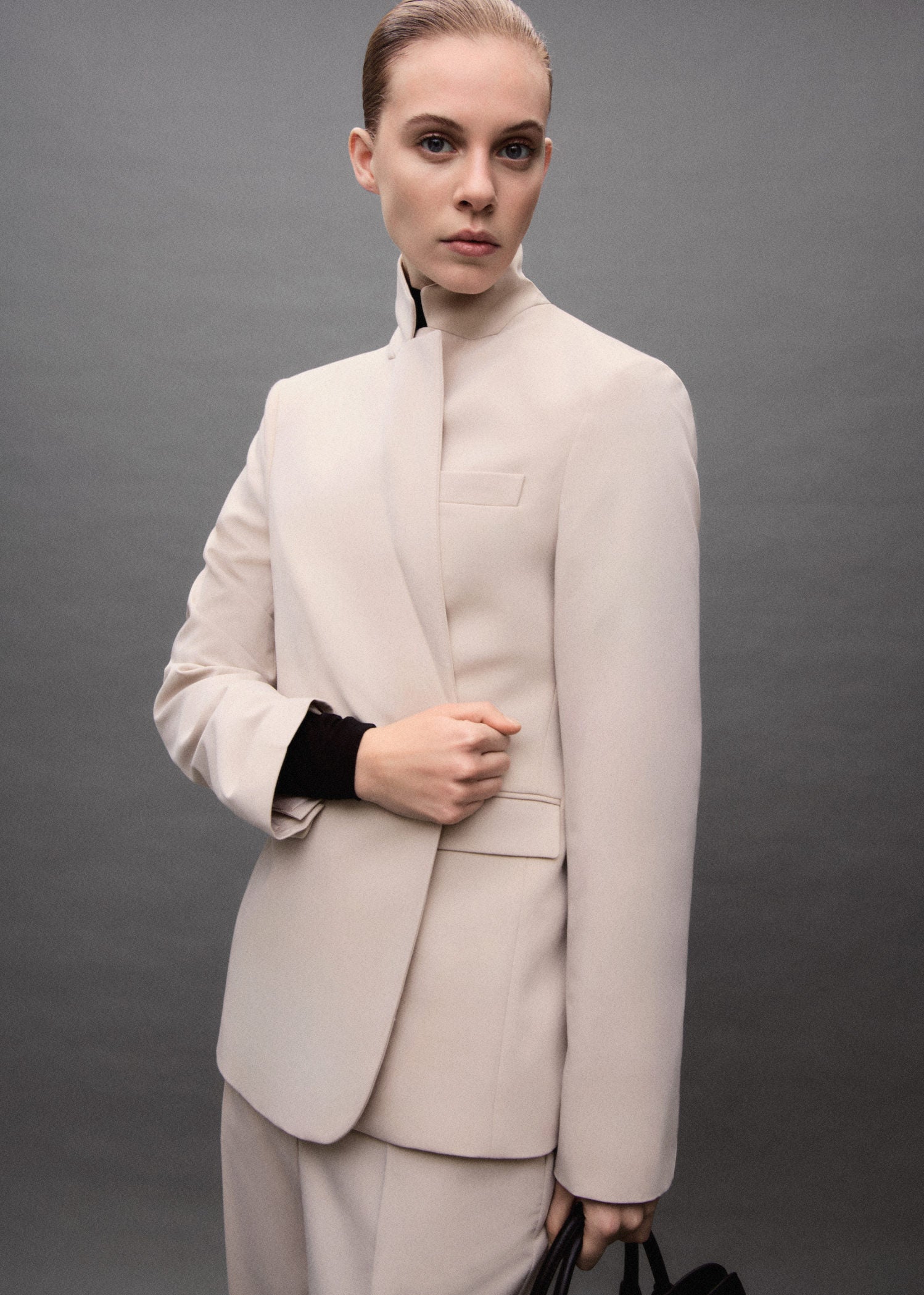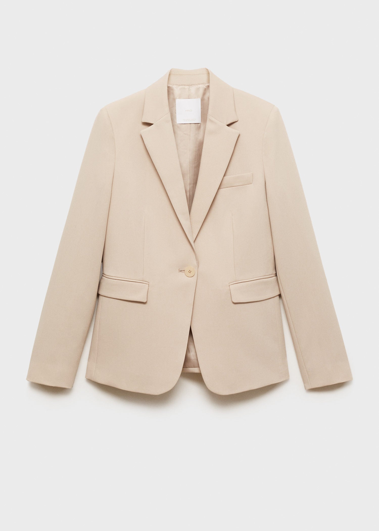 Forro interior,Diseño estándar,Abertura posterior,Cuello pico con solapa,Solapas,Hombros estructurados,Cierre delantero,Solapas con muesca,Solo forro,Cierre de botón en la parte delantera,Disponible Plus,Total look,Manga larga con puños abotonados,Diseño recto,Tamaño mediano,Dos bolsillos de ribete en la parte delantera,Un bolsillo de ribete en el pecho,Diseño entallado,La modelo mide 1,78 y lleva una talla S/36,Forro interior,Manga larga