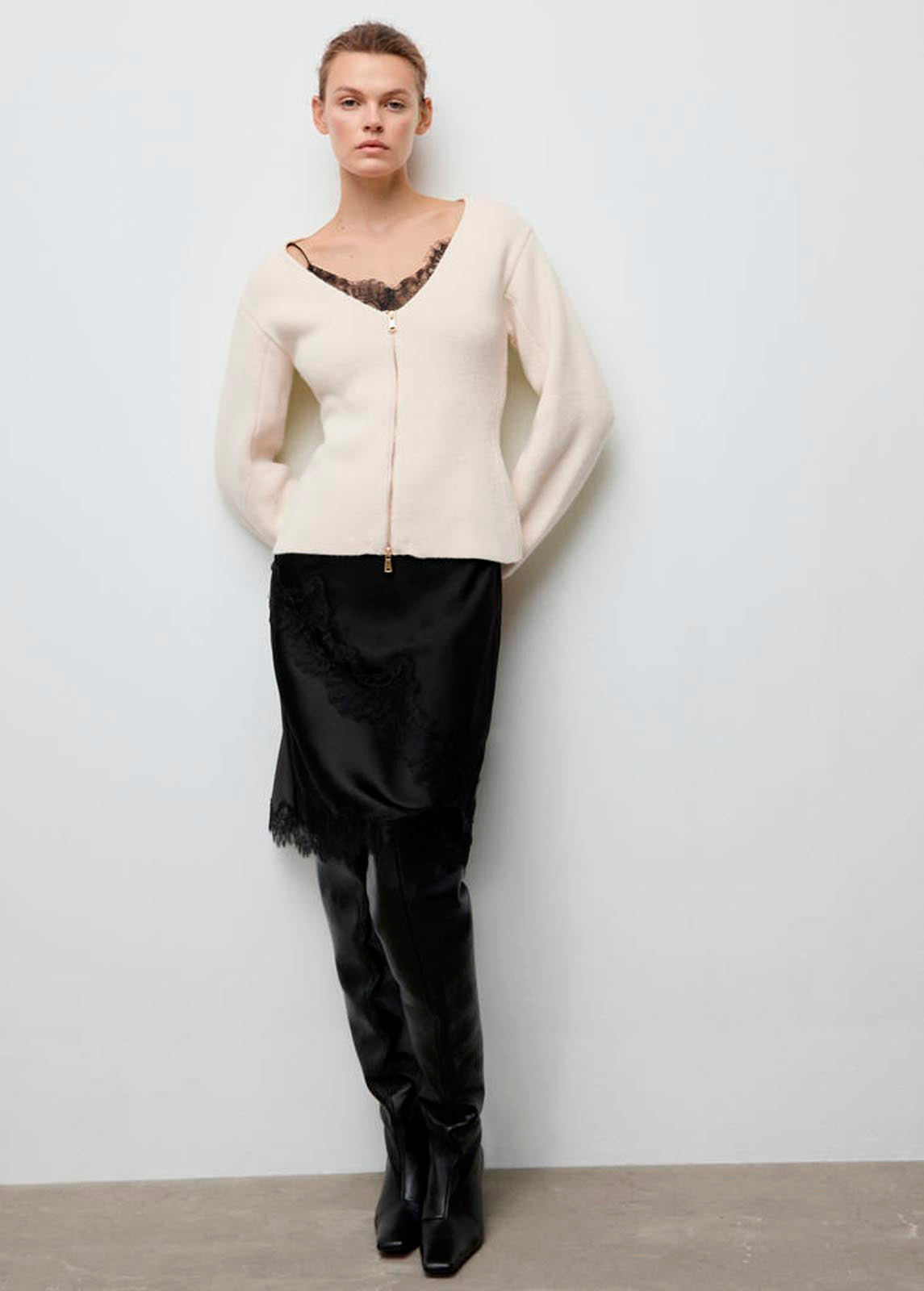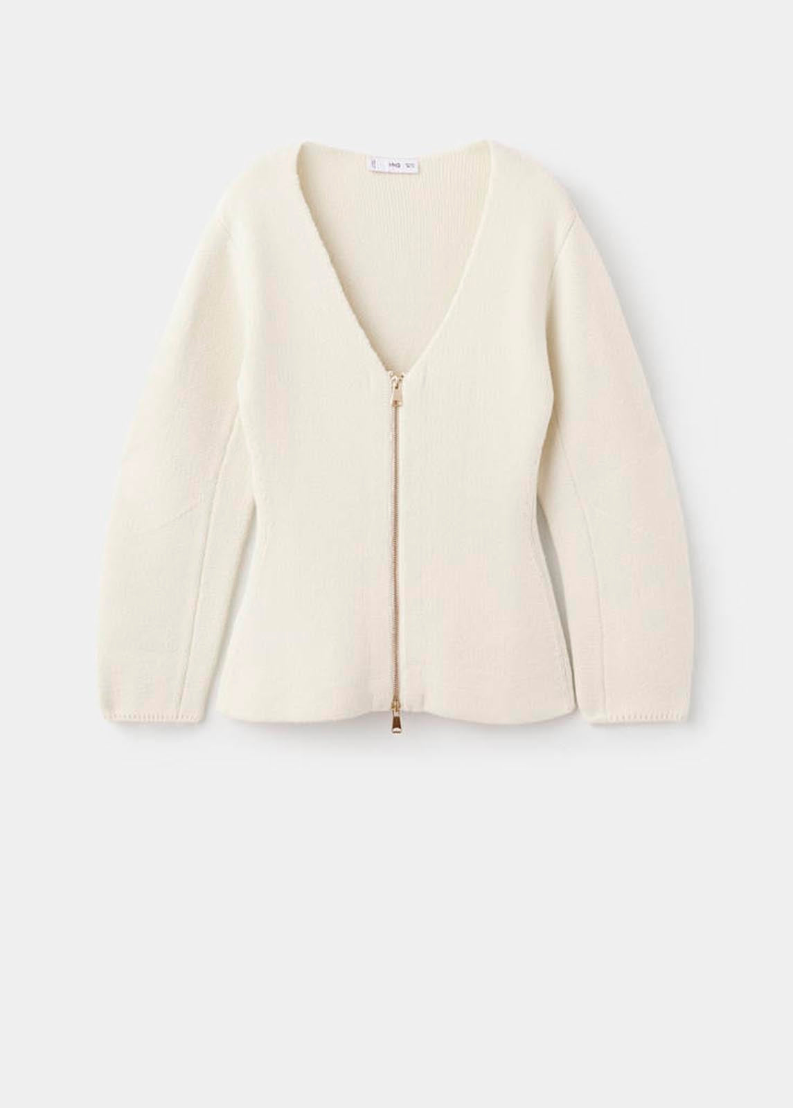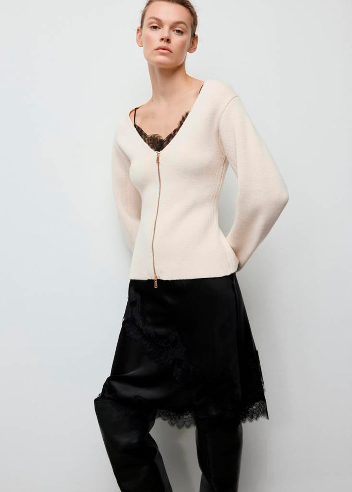 Cuello pico,Cierre delantero con cremallera,Tejido de punto medio,Diseño entallado,Manga larga