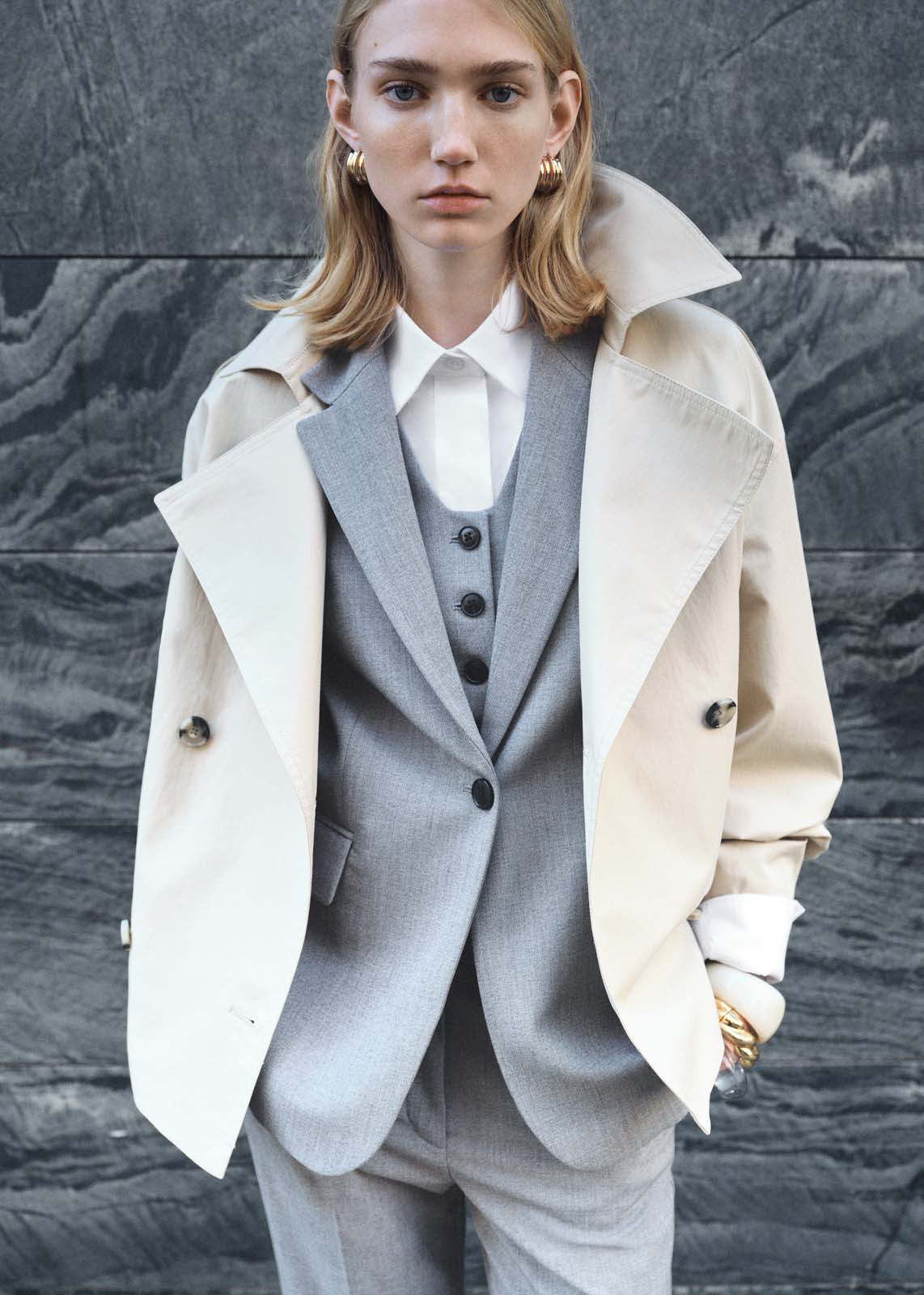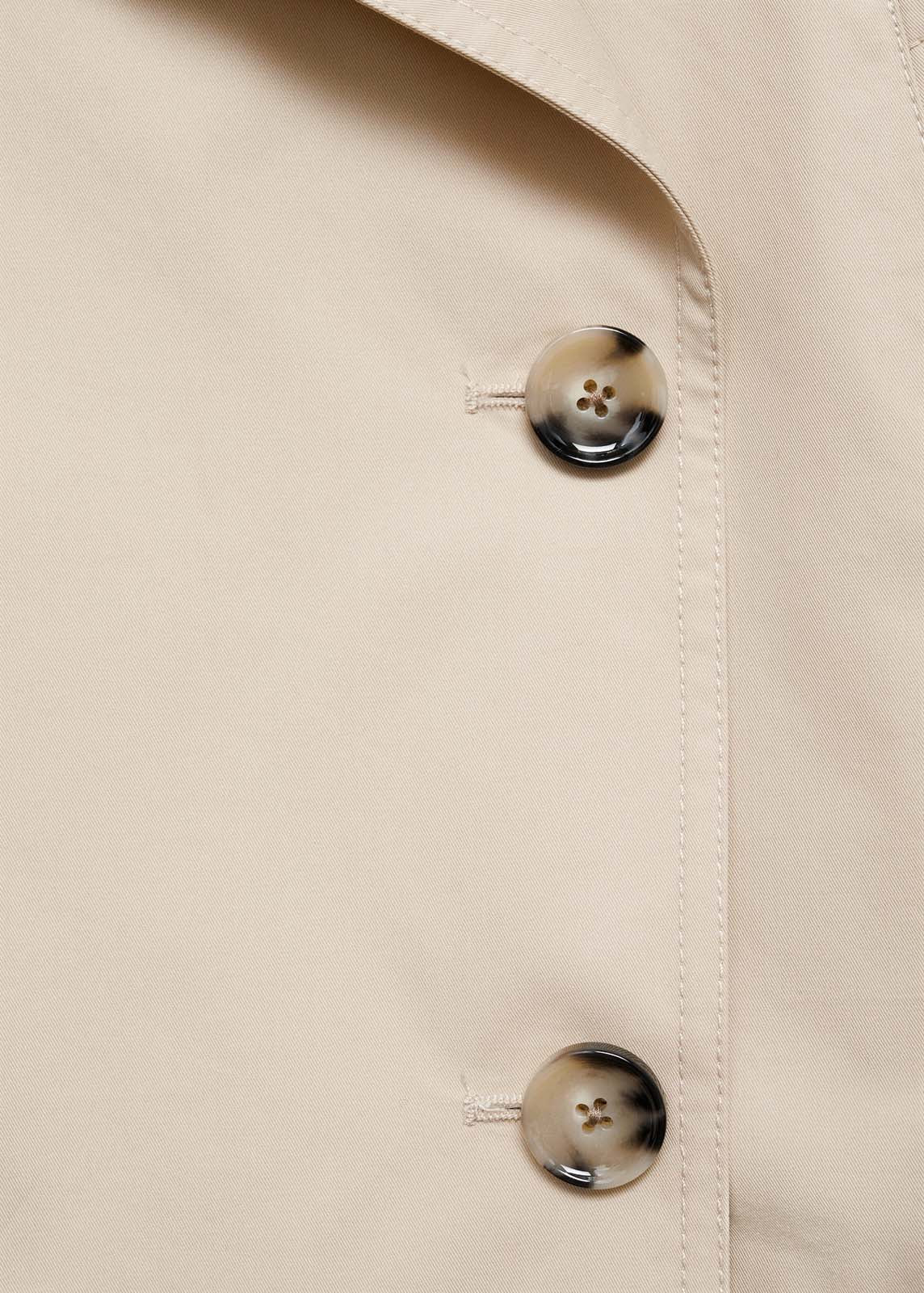 Cuello pico con solapa,Cierre de doble botonadura,Solapas con muesca,Diseño crop,Dos bolsillos laterales,Diseño recto,Tejido mezcla de algodón,Forro interior,Manga larga