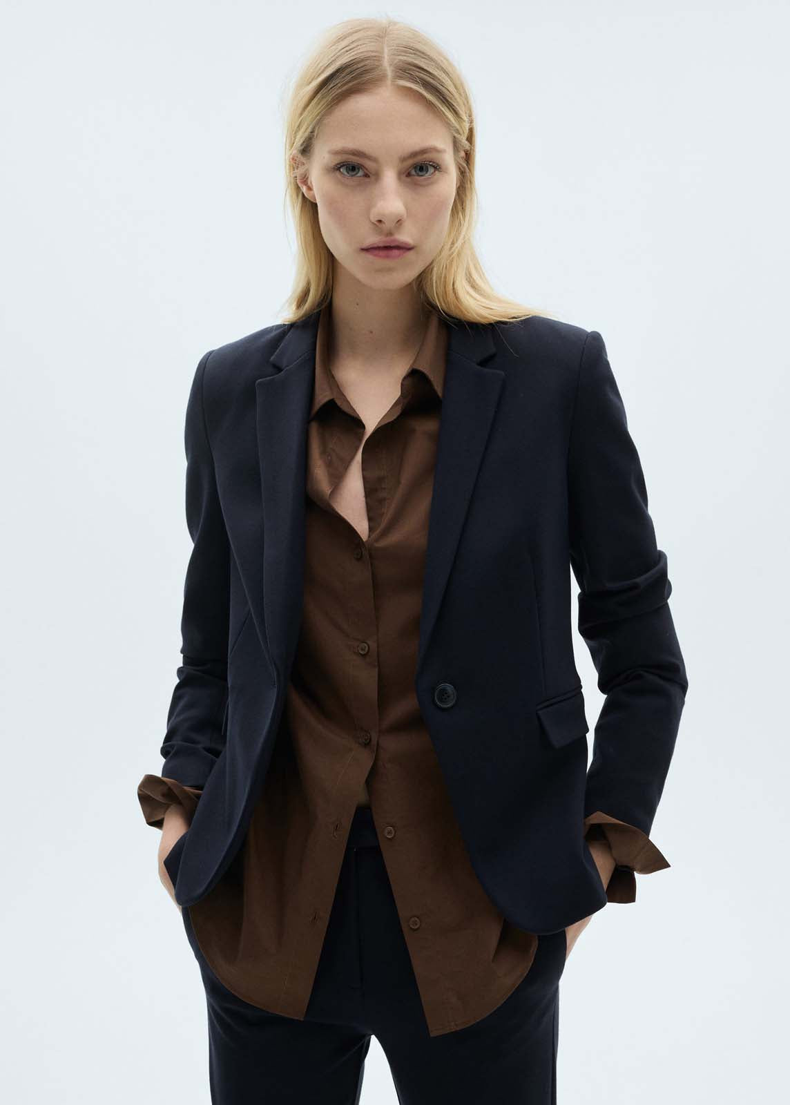 Forro interior,Cuello pico con solapa,Solapas con muesca,Cierre de botón en la parte delantera,Total look,Manga larga con puños abotonados,Diseño recto,Estilo traje,Dos bolsillos de solapa en la parte delantera,Largo Standard,Largo manga Larga,Silueta Slim,Ubicacion cierre Cierre Delantero,Estructura plana Medio,Relleno forro Solo Forro,Cuello solapa Solapa