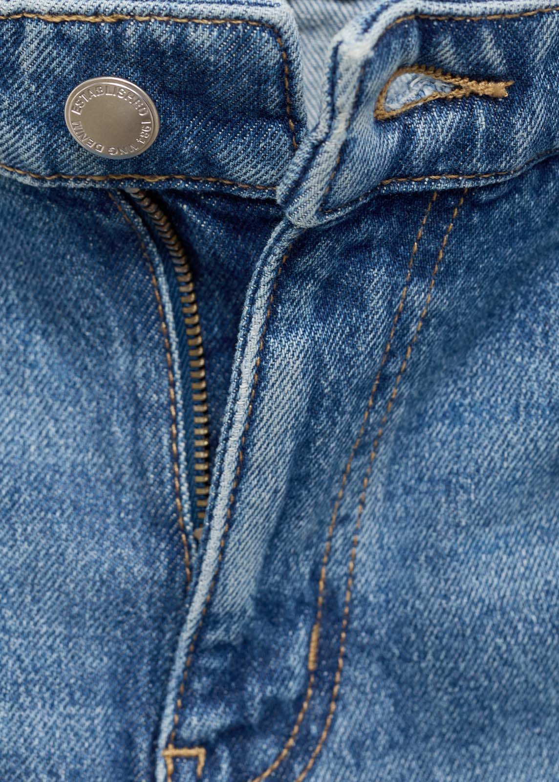 Trabillas,Tiro medio,Cierre delantero de cremallera y botón,Cinco bolsillos,Aberturas en el bajo,Diseño recto,Tejido elástico,Tejido de algodón estilo tejano vaquero,Largo interior 85 cm,Diseño largo