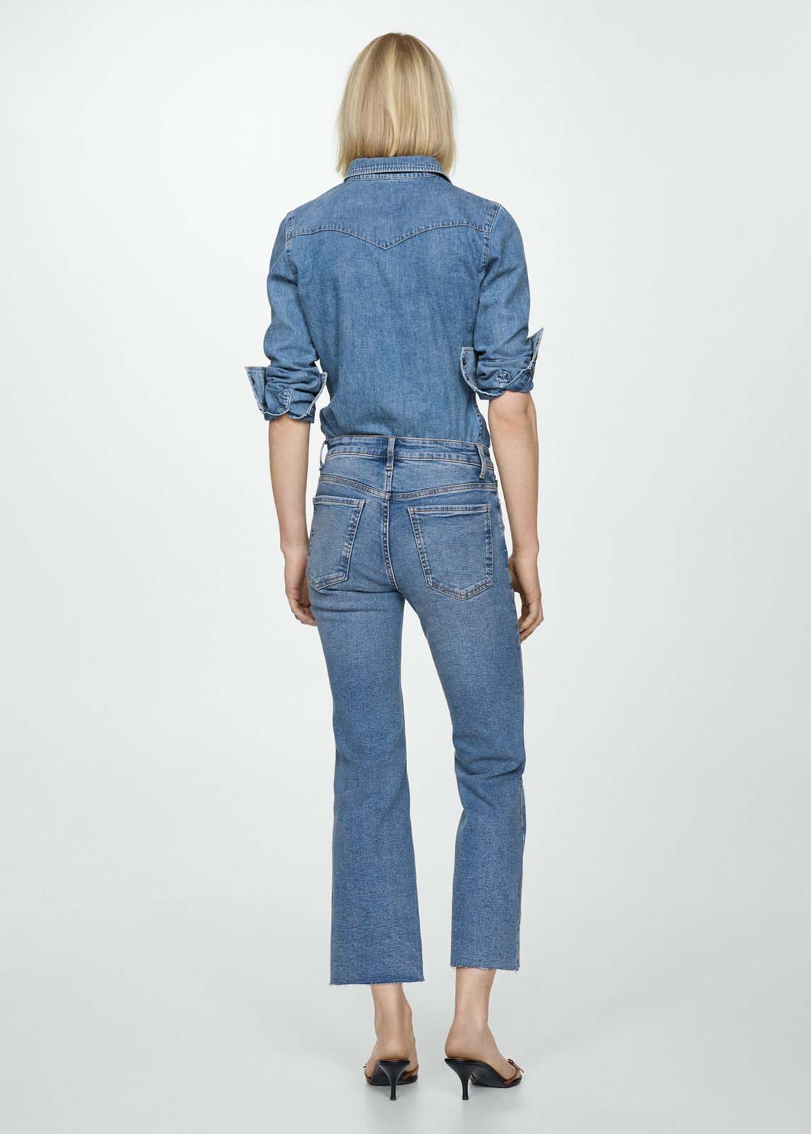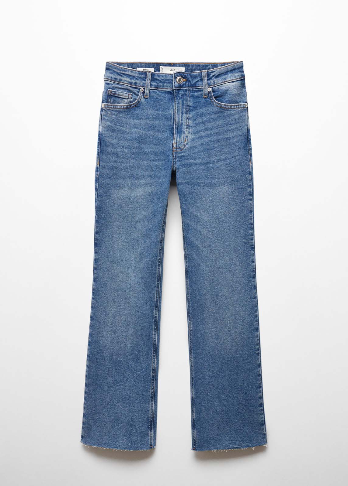 Tejido de algodón estilo tejano vaquero,Diseño crop,Tejido elástico,Trabillas,Cinco bolsillos,Cierre de cremallera y botón,Tiro alto,Estilo flare,Disponible Plus,Largo interior 68 cm,La modelo mide 178 y lleva una talla 36,Diseño campana