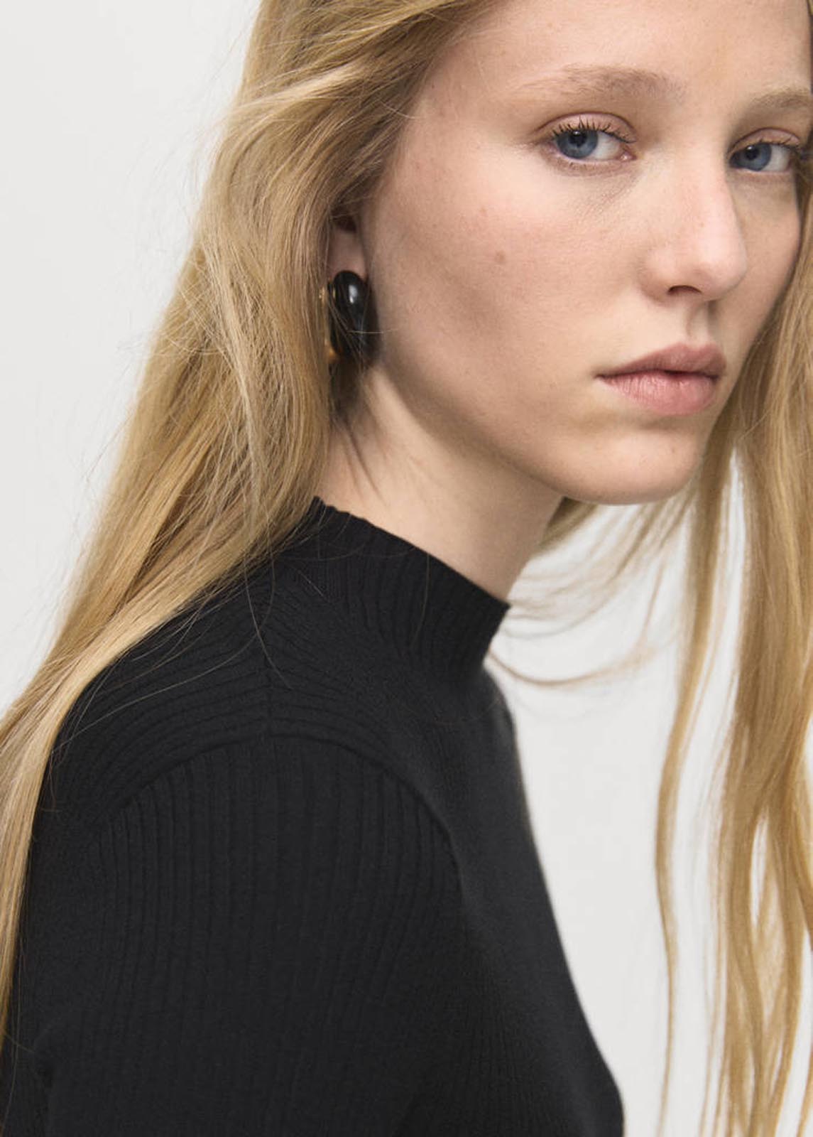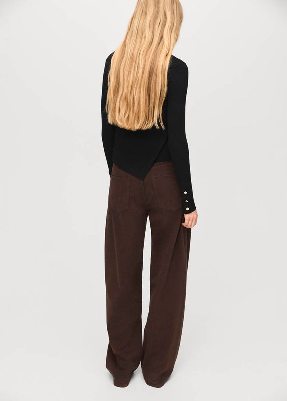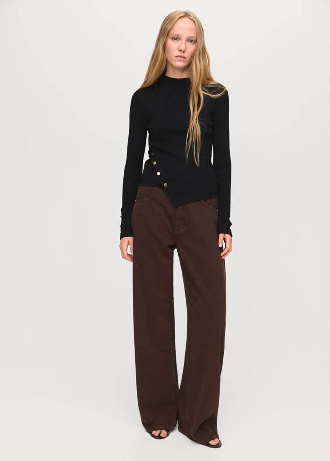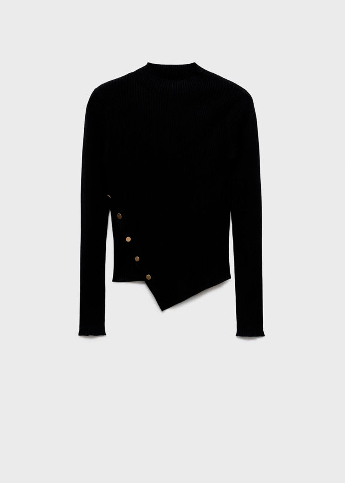 Bajo asimétrico,Tejido de punto fino,Tejido de canalé,Cuello redondo,Disponible Plus,Manga larga con puños abotonados,Detalle de botones laterales,Diseño entallado