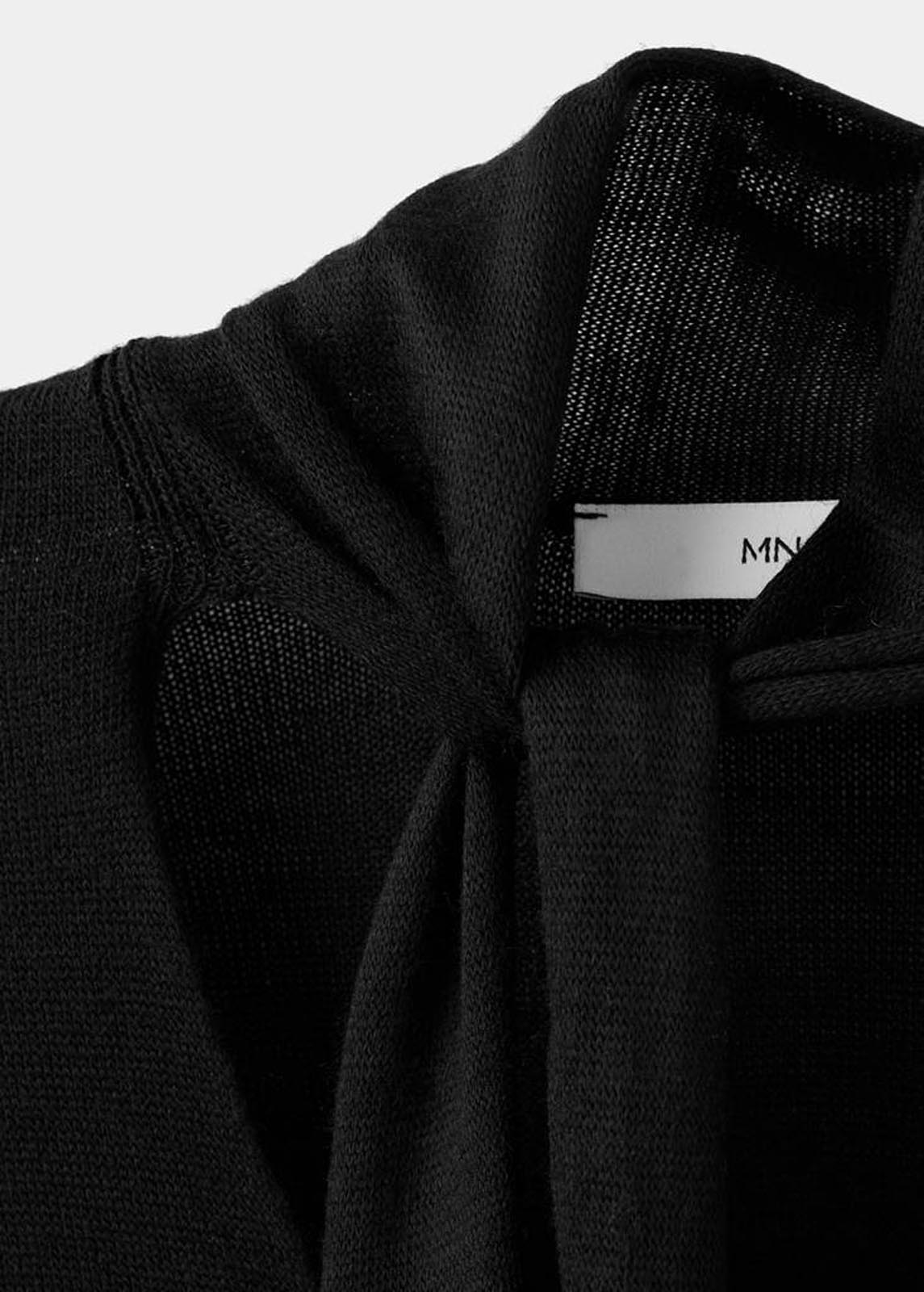 Sin cierre,Adorno de fular en el cuello,Tejido mezcla de lana,Tejido de punto fino,Diseño recto,Cuello de pico,Manga larga