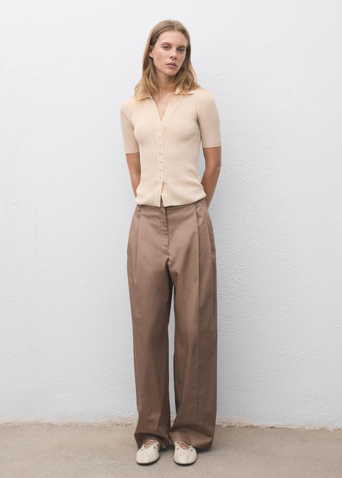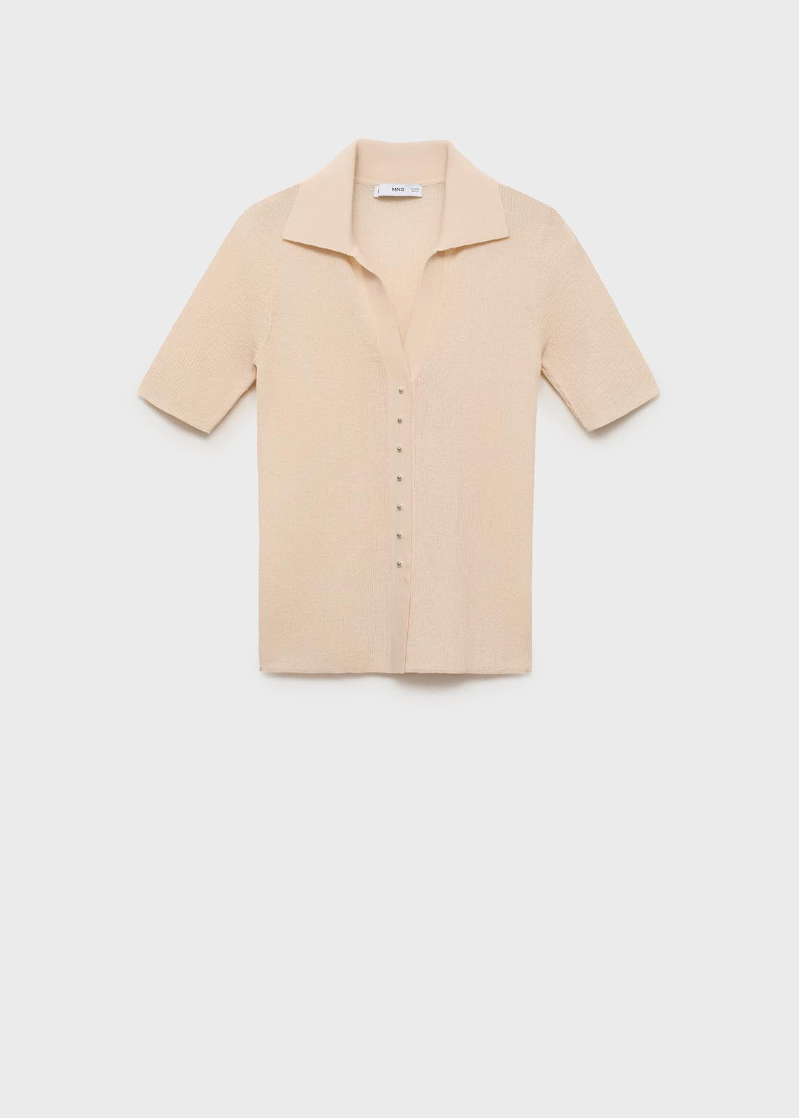 Manga corta,Tejido de punto fino,Cuello camisero,Punto de canalé,Tejido de algodón,Cierre delantero con botones,Diseño entallado