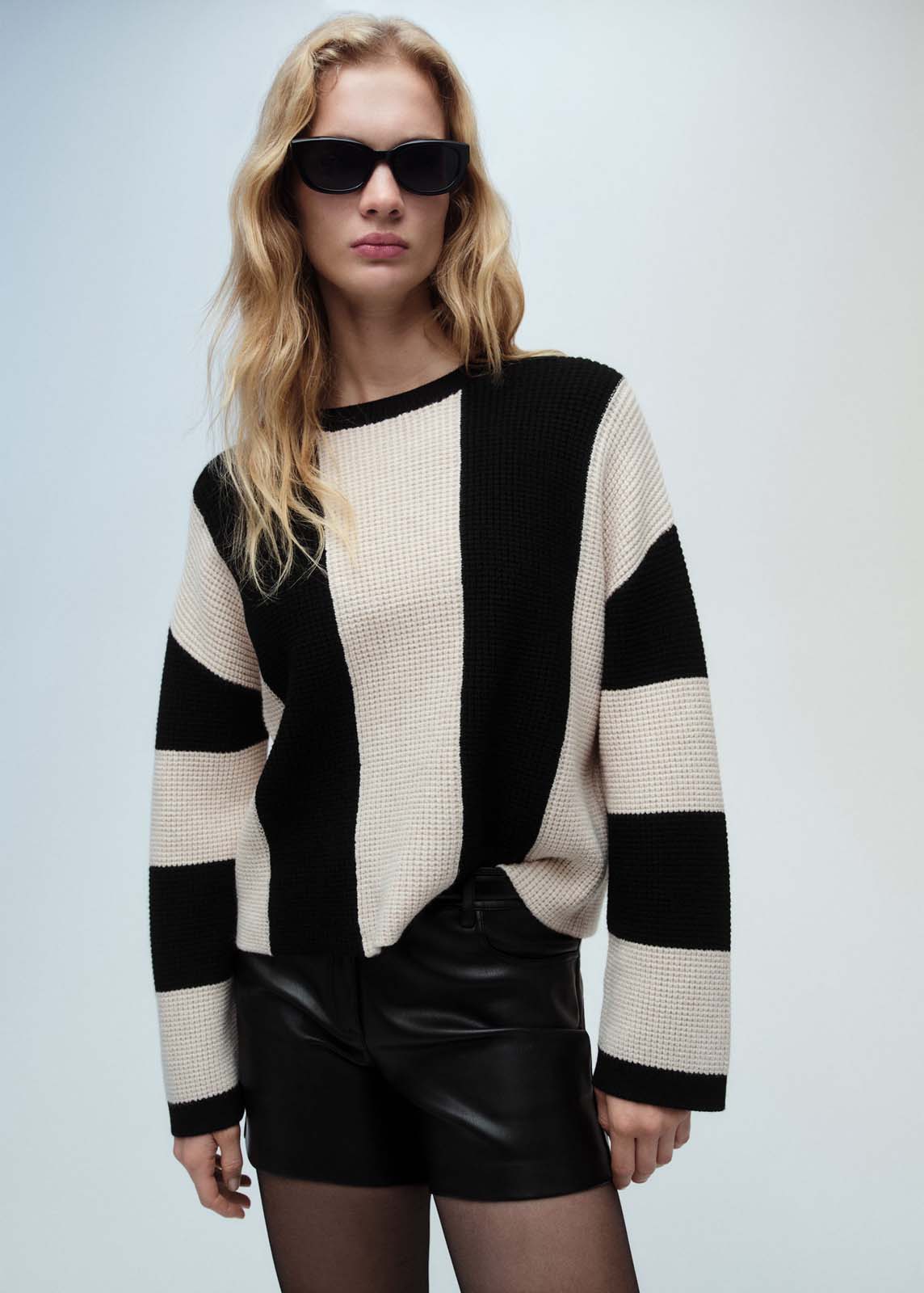 Sin cierre,Cuello redondo,Diseño recto,Diseño de rayas,Tejido de punto,Manga larga