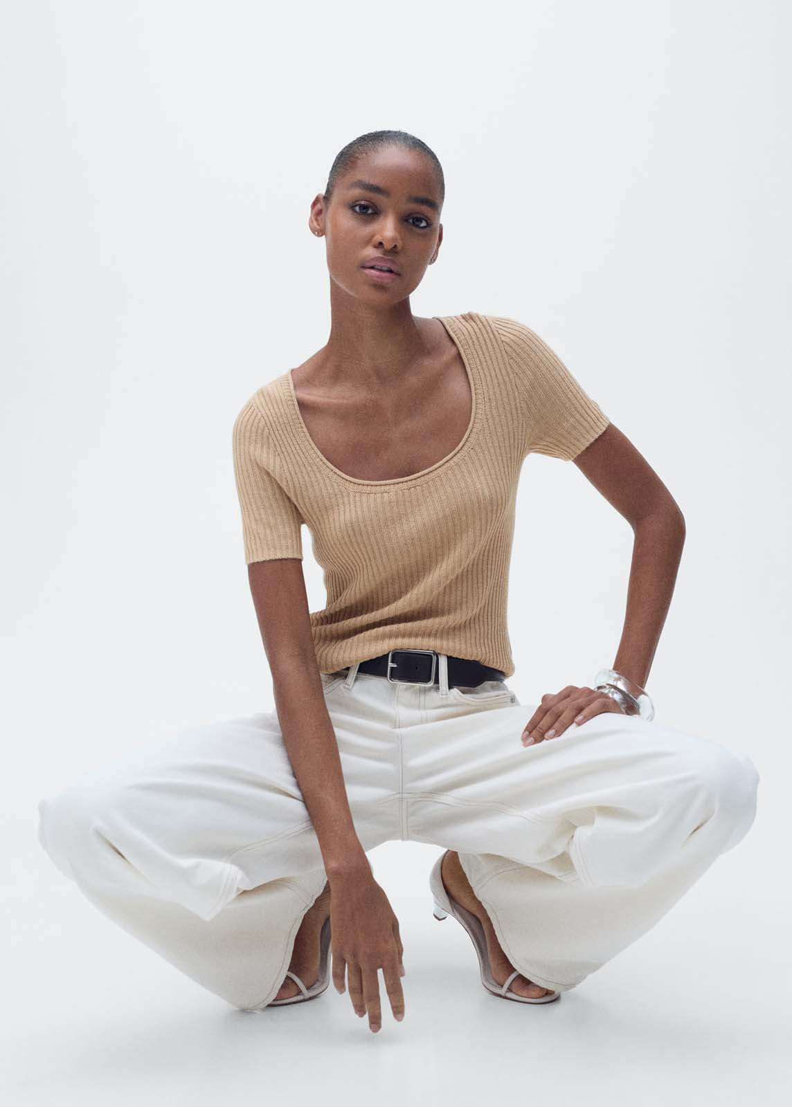 Manga corta,Tejido mezcla de lino,Sin cierre,Disponible Plus,Cuello escotado,Diseño recto,Punto medio
