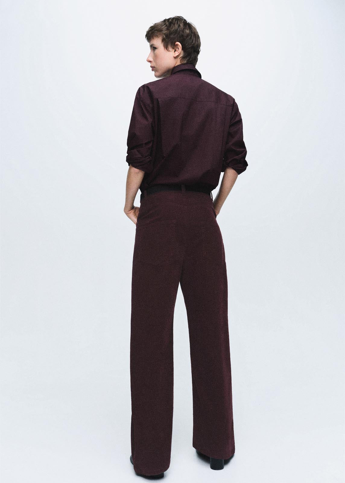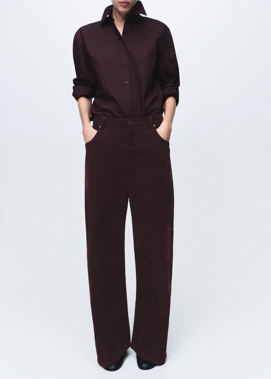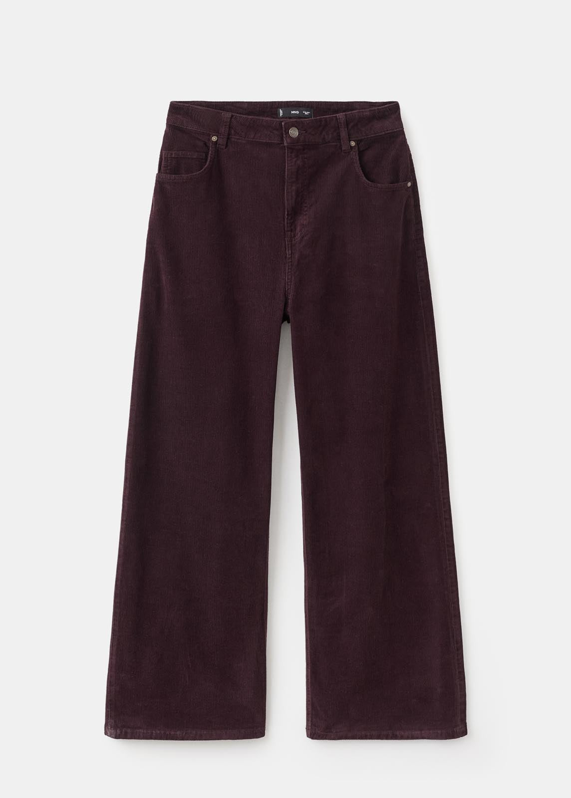 Cierre de botón y cremallera,Trabillas,Tiro bajo,Diseño wide leg,Cinco bolsillos,Tejido confort con elasticidad,Tejido de pana,Diseño largo