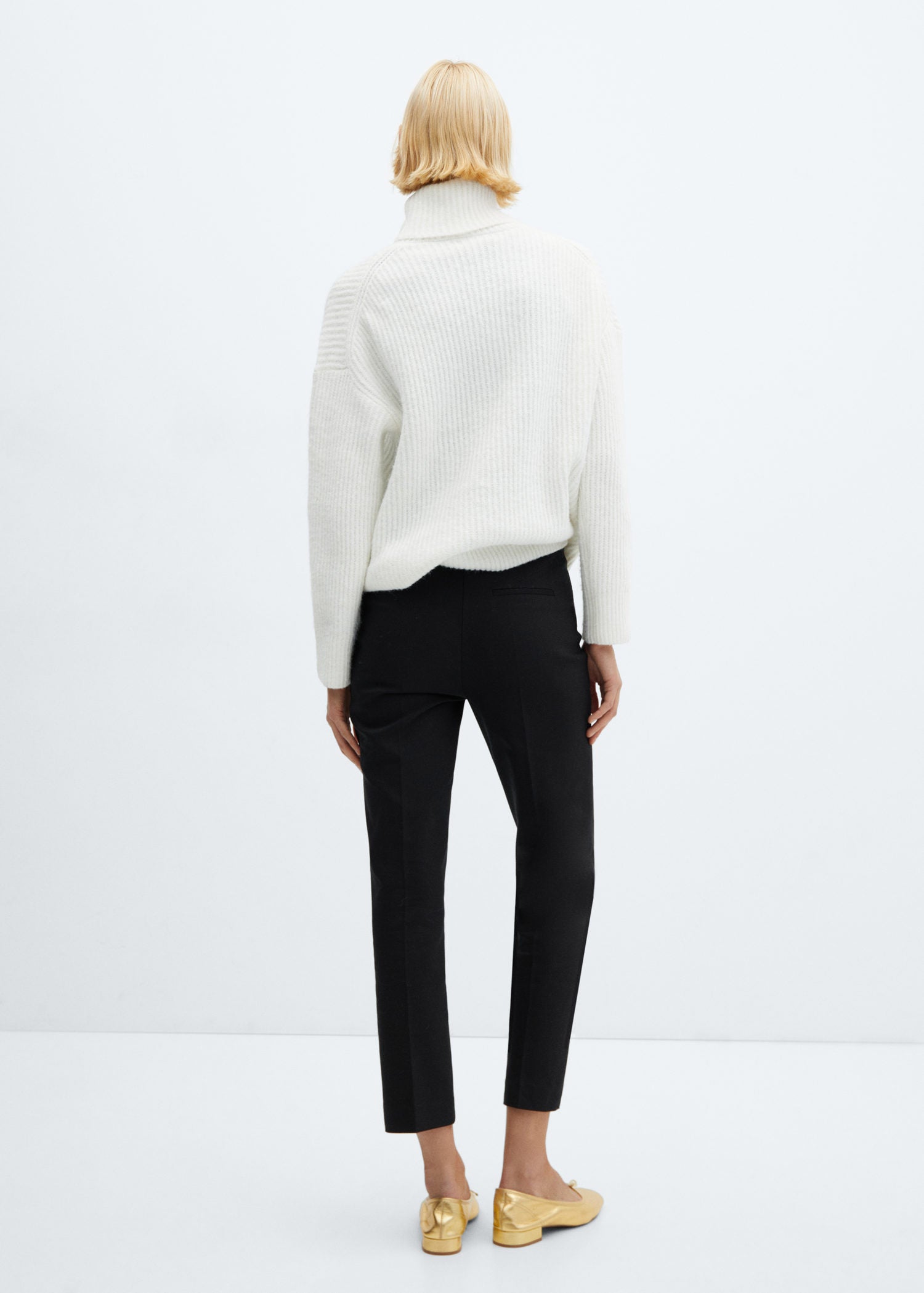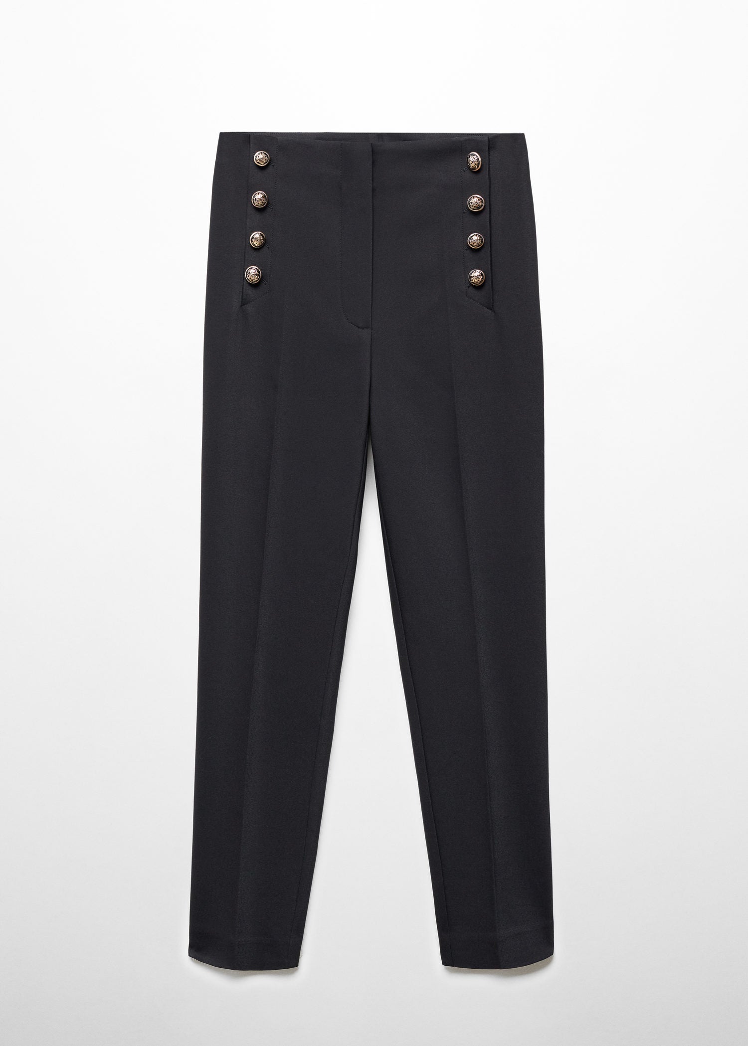 Tejido mezcla de algodón,Diseño crop,Dos bolsillos laterales,Dos bolsillos de ribete en la parte posterior,Cierre oculto de botón, gancho y cremallera,Corte skinny,Botones decorativos